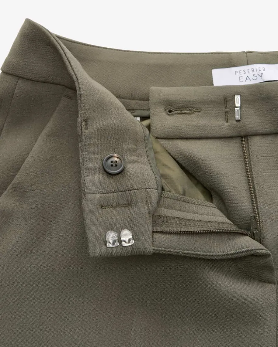 7/8-Hose für Damen von Peserico Easy in Khaki. Das Modell begeistert mitschmalem, leicht verkürztem Bein und angenehmen Material-Mix. Klassische Detailsrunden den Style gekonnt ab.