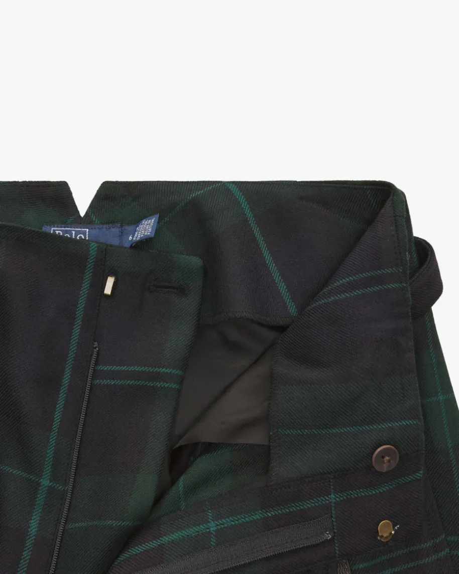 7/8-Wollhose für Damen von Polo Ralph Lauren in Dunkelgrün und Dunkelblau. DasModell präsentiert sich dank der weiten, verkürzten Passform und der weichenWoll-Qualität mit kariertem Tartan-Muster als modischer Favorit, währendklassische Details sowie Bund- und Bügelfalten ein stilvolles Gesamtbild mitBrit-Chic-Flair kreieren.