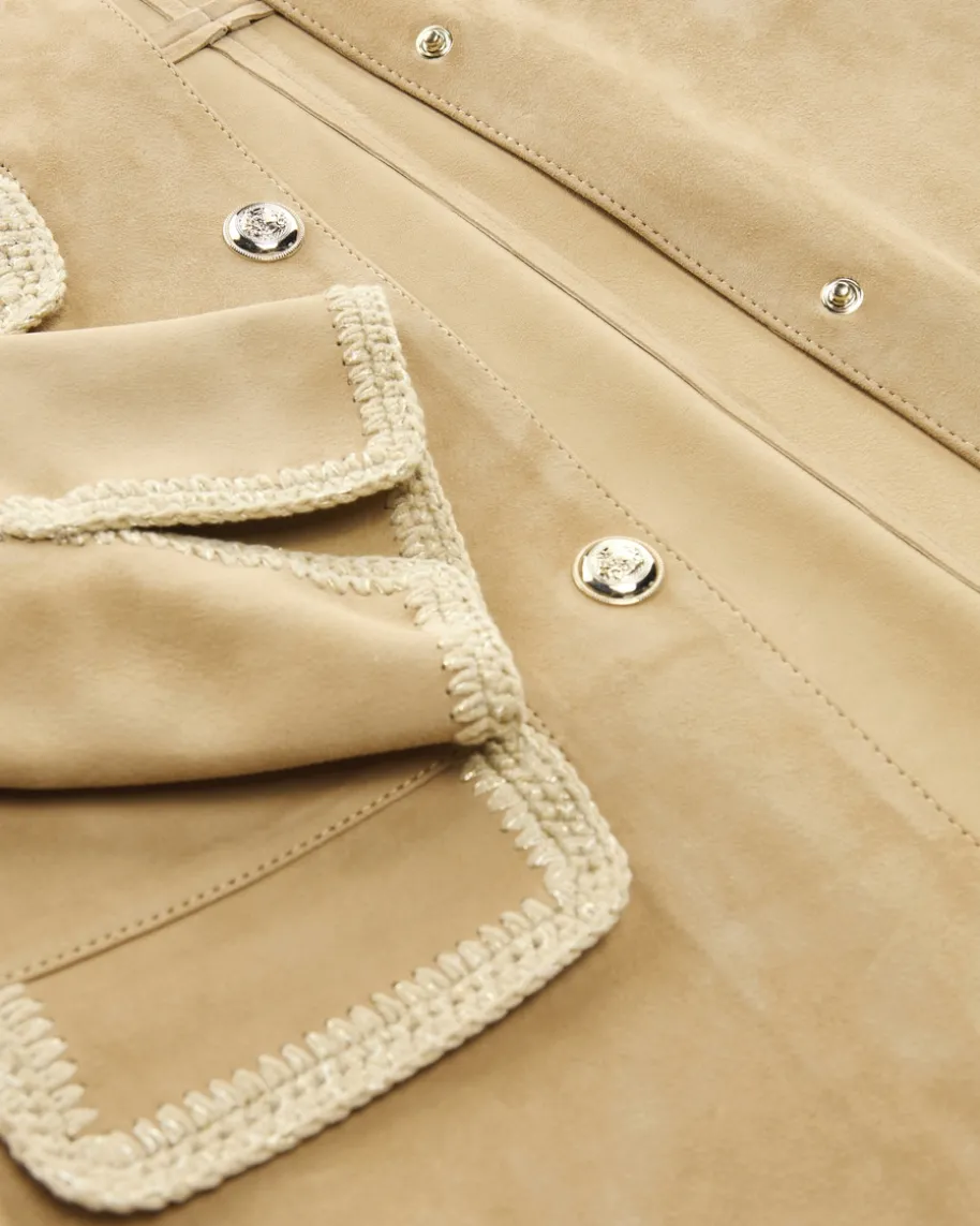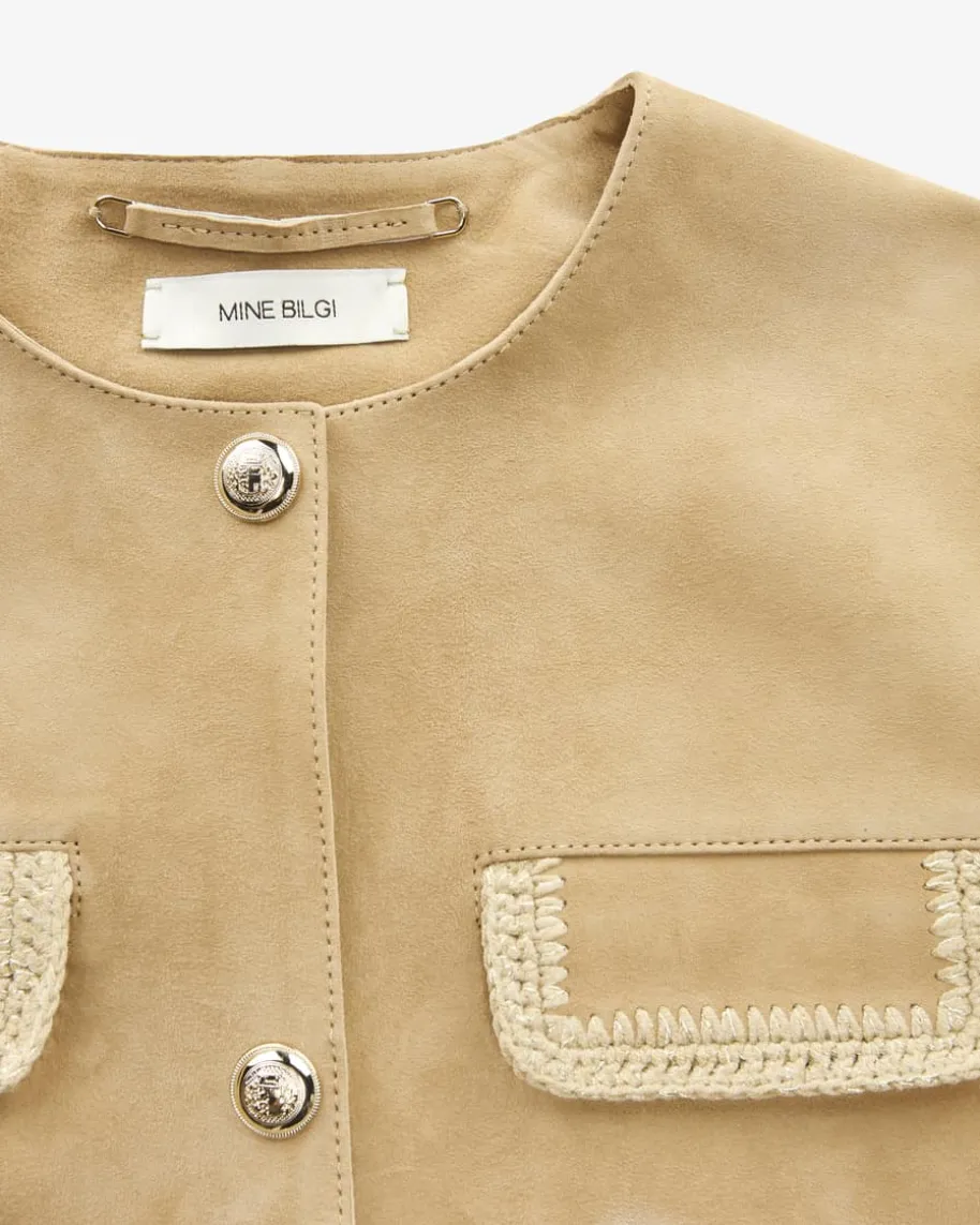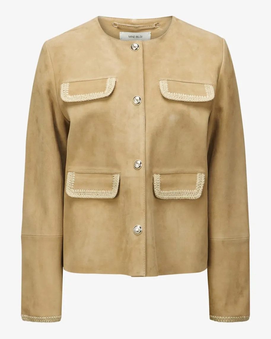 Abelia Lederjacke für Damen von Mine Bilgi in Beige. DasModell präsentiert sichin modische Aufmachung, die durch die goldfarbenenWappenknöpfe sowie diemarkanten Klappentaschen stilvoll ergänzt wird. Diehochwertige Leder-Qualitätverleiht zudem einen edlen Charakter und überzeugt sowohlhaptisch als auchoptisch.