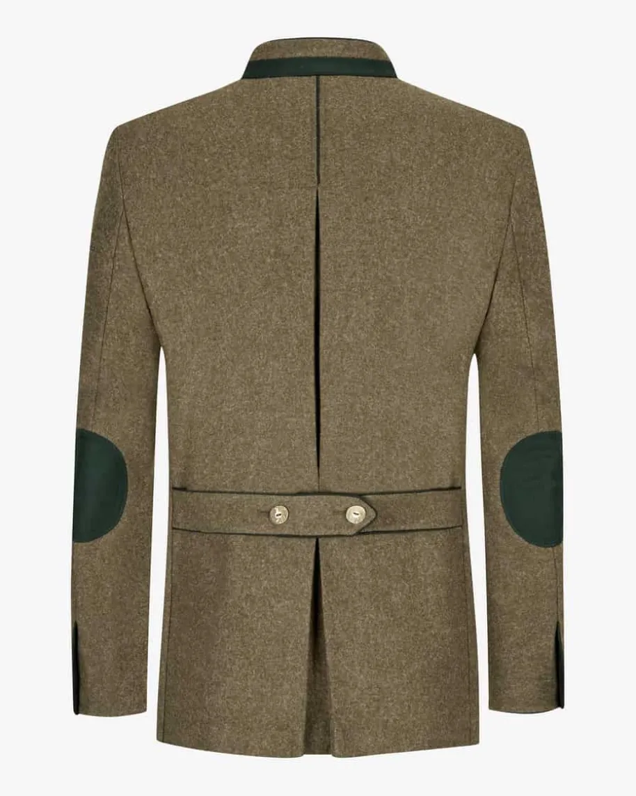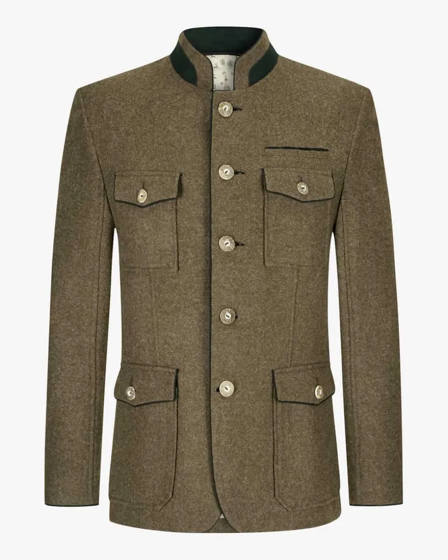 Adrian Trachten-Janker für Herren von Habsburg in Dunkelbraun. Das Modell aushochwertiger Schurwoll-Qualität präsentiert sich in traditioneller Aufmachung,welche dank der rustikalen Hornknöpfe wie auch dem dekorativen Rückenriegelgekonnt untermalt wird. Zugleich vollenden die Wappen-Stickereien sowiePaspelierungen den Trachten-Look harmonisch.