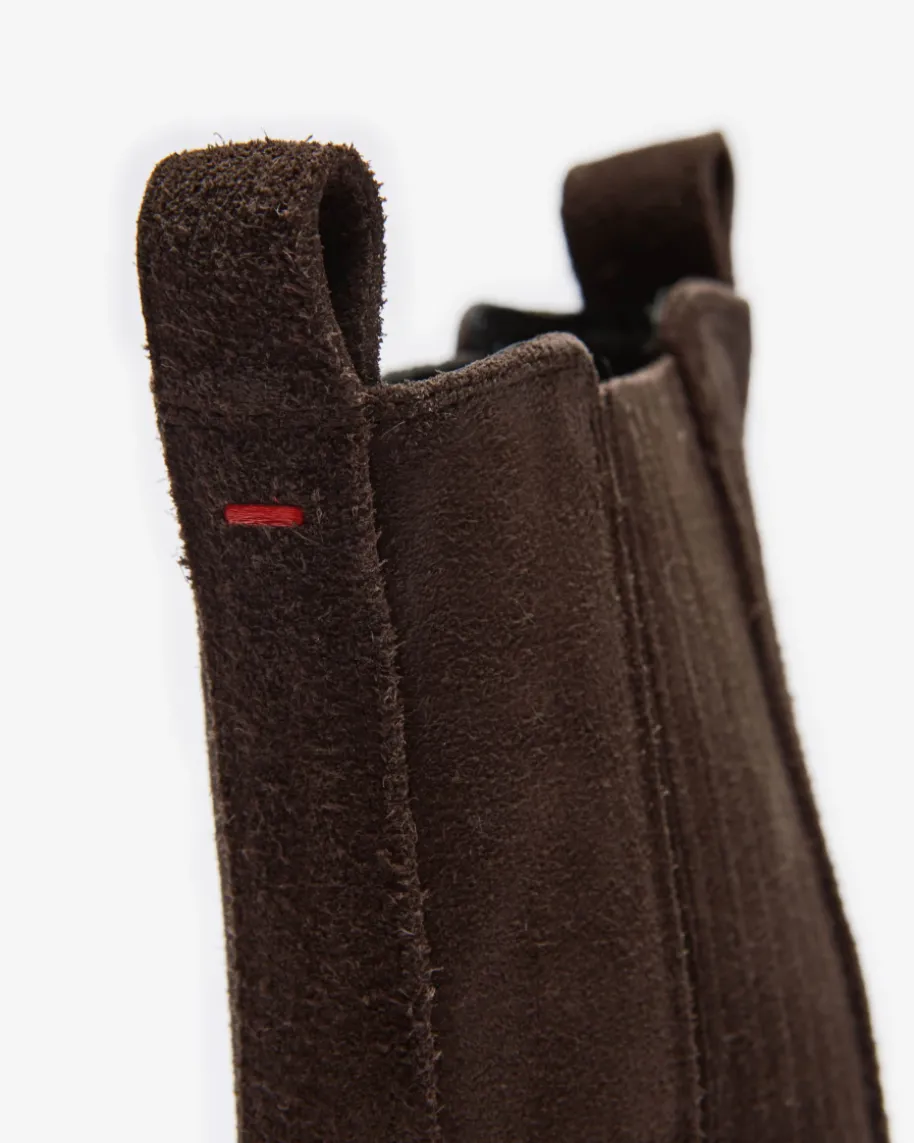 Agata Stiefeletten für Damen von Ayede in Mokka. Dank der Verwendung von weichemKalbsvelours entsteht ein hochwertiger Schuh, während die Cowboystiefel-Silhouette mit charakteristischem Absatz und spitzer Form einen modischenEquestrian-Charakter verleiht. Zugleich sorgen die seitlichen Stretch-Einsätzesowie Zugschlaufen für ein einfaches An- und Ausziehen.