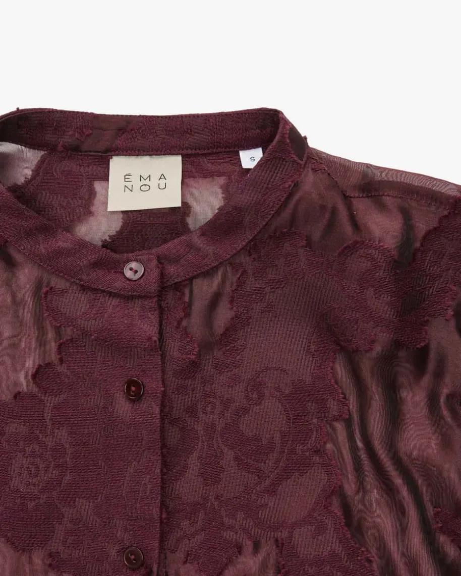Alexandra Bluse für Damen von Emanou in Burgund. Die junge Modemarke mitfranzösischem Flair stellt verspielte Designs, sanfte Farbwelten und fließendeStoffe in den Fokus. Auch dieses Modell überzeugt mit semi-transparentemMaterial mit floraler Spitze, während die feminine Silhouette und klassischeDetails das Design gekonnt abrunden.