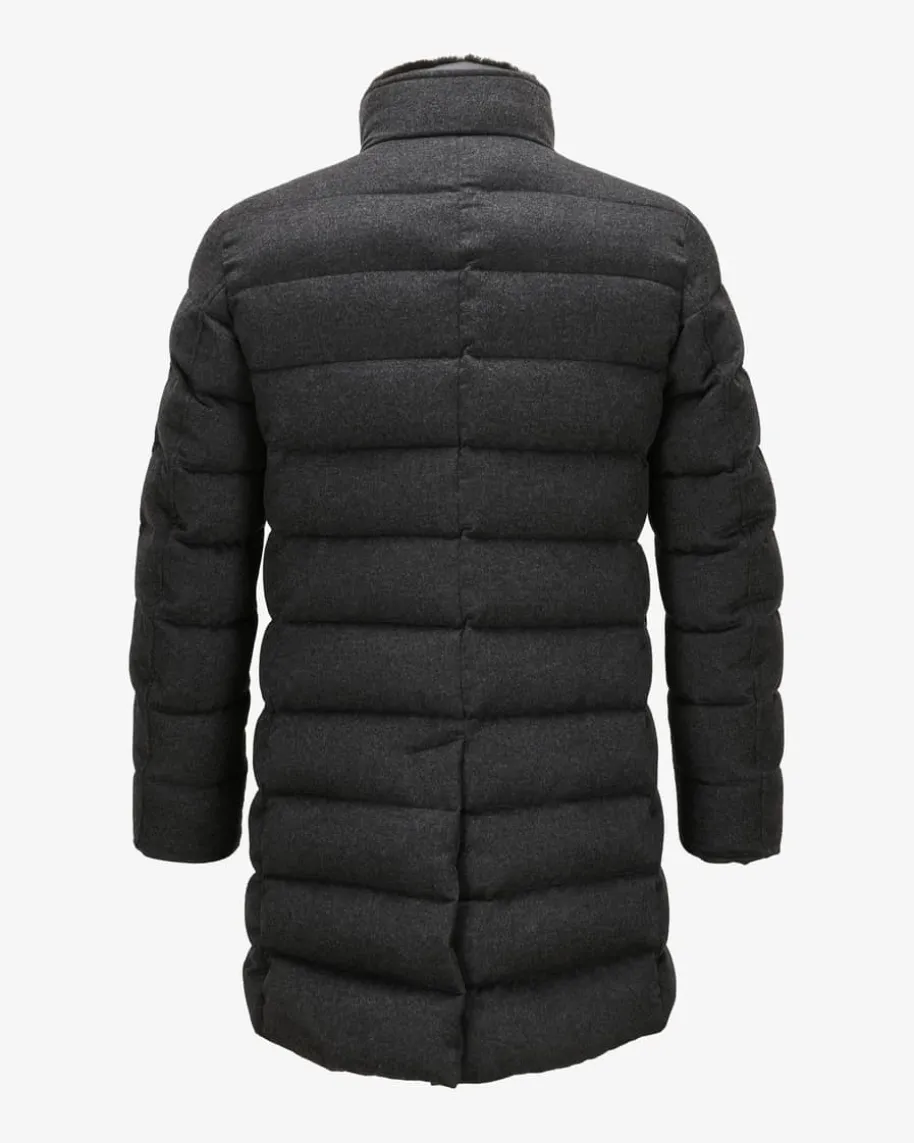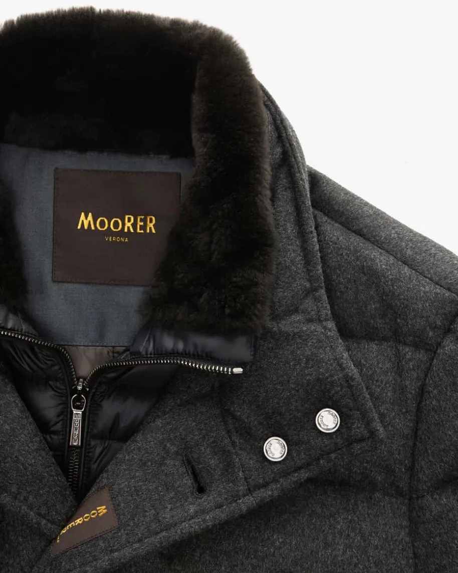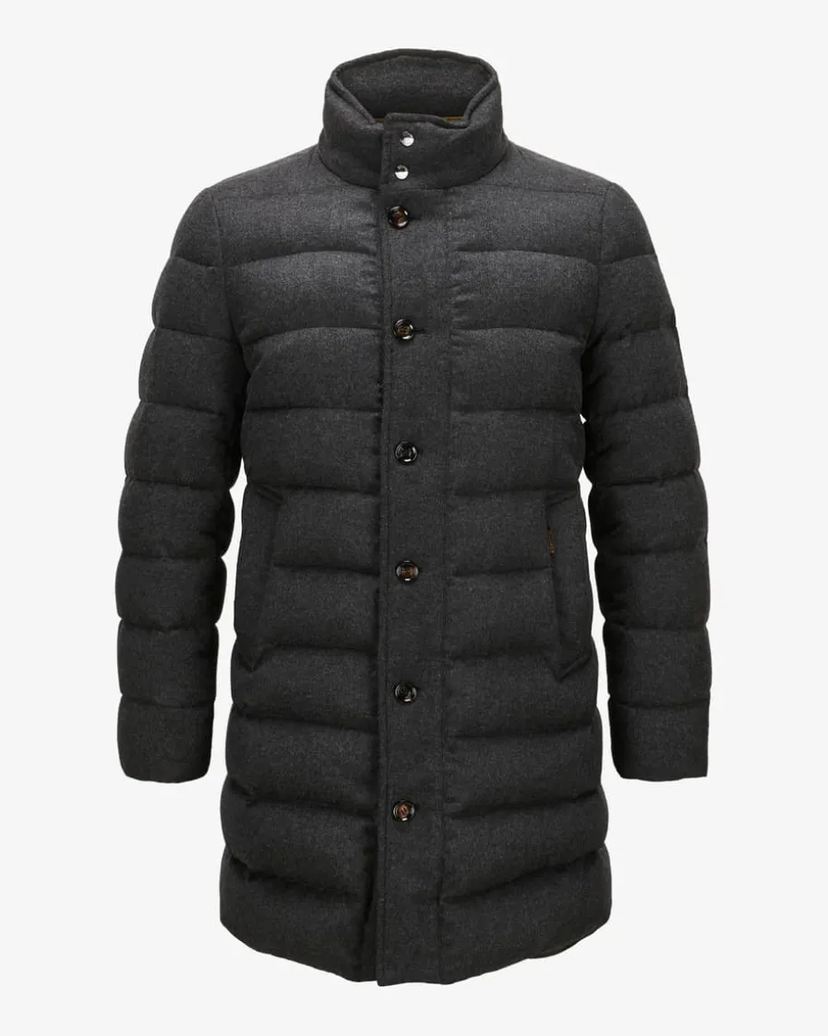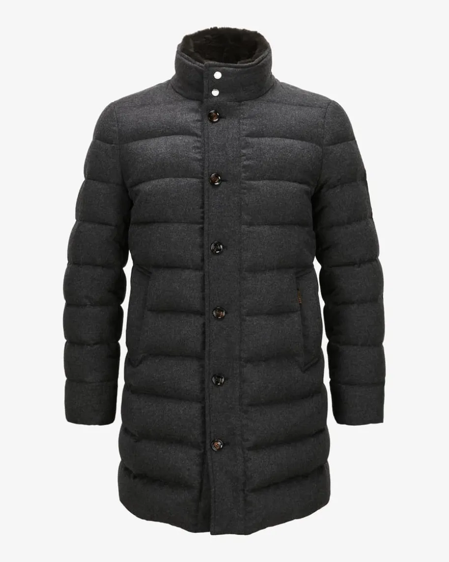 Alfieri Cashmere-Mantel für Herren von Moorer in Anthrazit. Made in Italy – DasimNorden Italiens ansässige Label steht für hochwertige Jacken, gefertigt ausfeinsten Materialien und jedes Design steht für den klassischen Mode-CharmeItaliens. Auch dieses Modell vereint maskulinen Charme mit funktionalenEigenschaften. Während die hochwertige Cashmere-Qualität für ein edles Finishsorgt, bietet die wärmeisolierende Daunen-Feder-Füllung optimalen Schutz vorKälte.