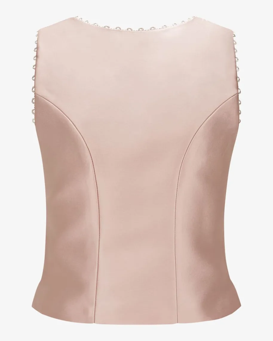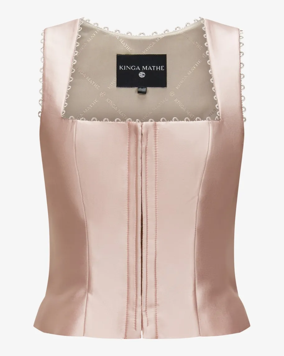 Alva Trachten-Mieder für Damen von Kinga Mathe in Rosé. Mit diesem changierendenSpencer-Modell erhalten Sie einen modischen und dennoch traditionellenEyecatcher für vielseitige Trachten-Looks – egal ob kombiniert zum femininenRock oder zur rustikalen Lederhose.