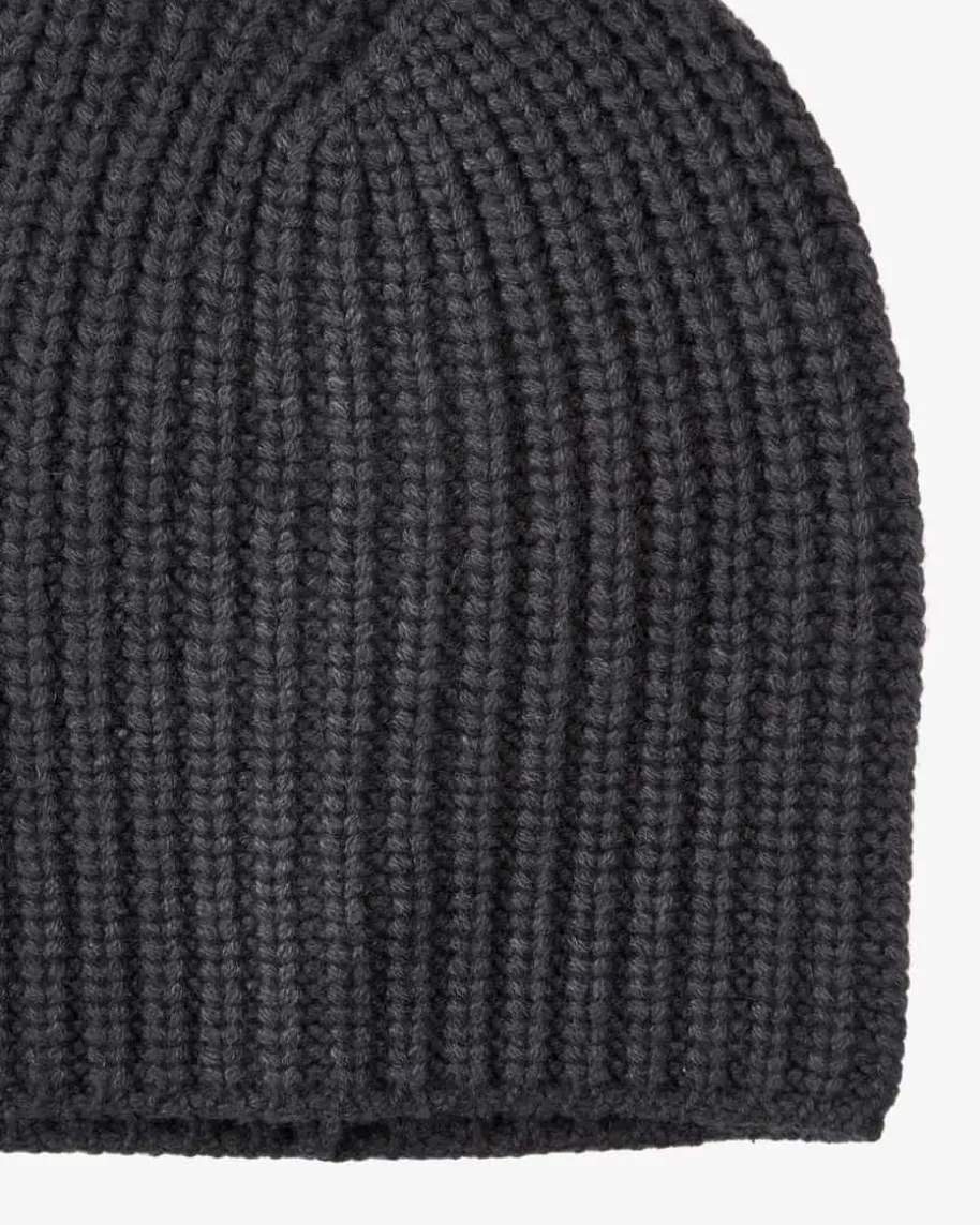 Amel Cashmere-Mütze von Iris von Arnim in Anthrazit. Das Modell aus weicherCashmere-Wolle überzeugt im klassischen Design mit grobem Rechtsstrick-Muster.