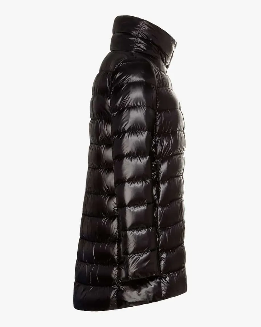 Amelia Daunenmantel für Damen von Herno in Schwarz. Das italienische Label hatsich mit seinen besonders weichen und leichten Daunen-Modellen einen Namen inder Modebranche gemacht und ist für Liebhaber nicht mehr wegzudenken. DieserKlassiker präsentiert sich in gewohnt changierender Stepp-Optik und hält ankalten Tagen nicht nur warm, sondern punktet auch durch die modische A-LinienPassform.