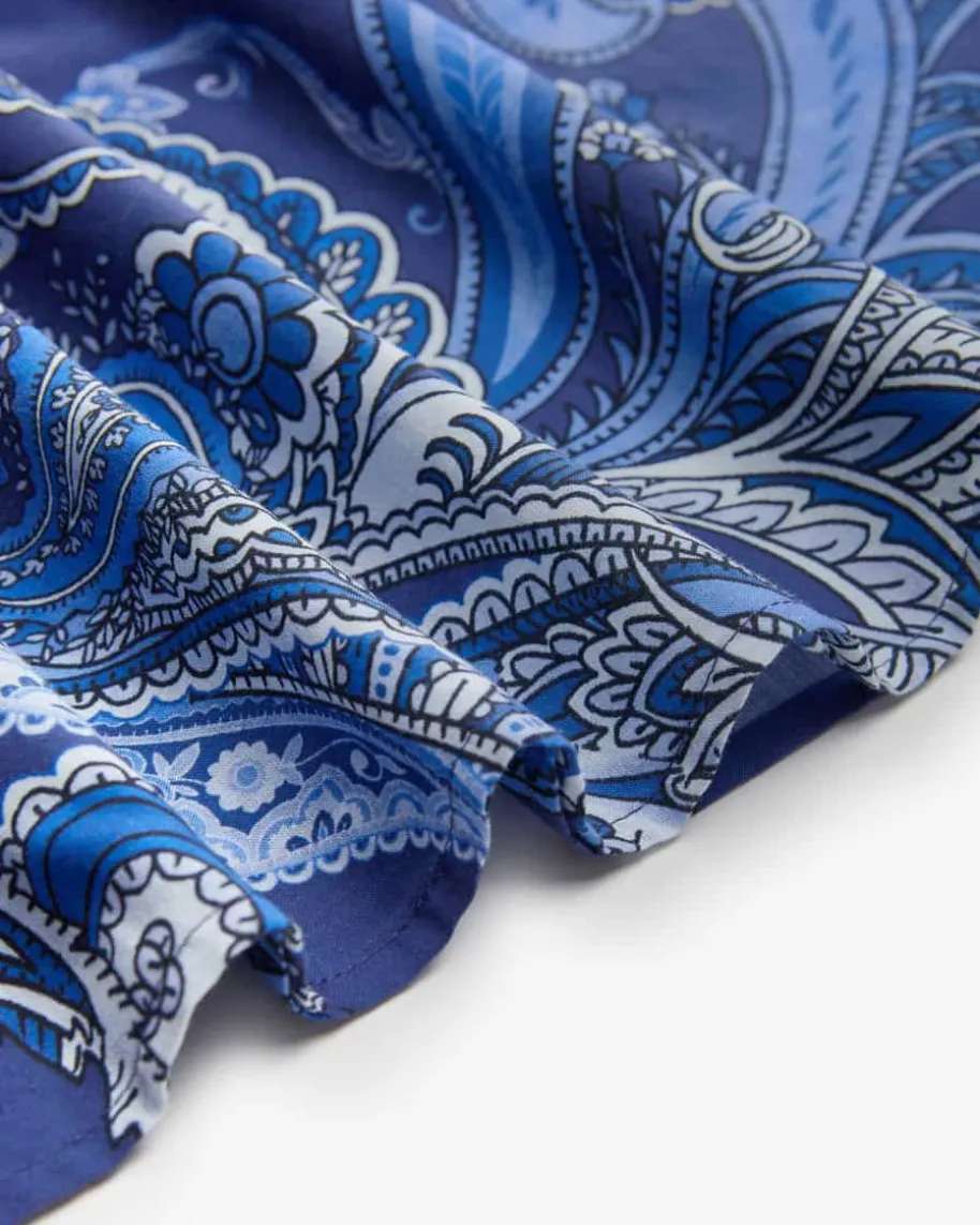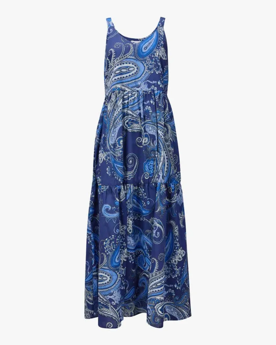 Amira Kleid für Damen von Robert Friedman in Dunkelblau, Blau und Weiß. Dank derhochwertigen Baumwolll-Qualität verspricht das Modell einen hohen Tragekomfort,während eingereihte Details einen femininen Style schaffen, rundet das Paisley-Allover-Dessin den Gesamtlook modern ab.
