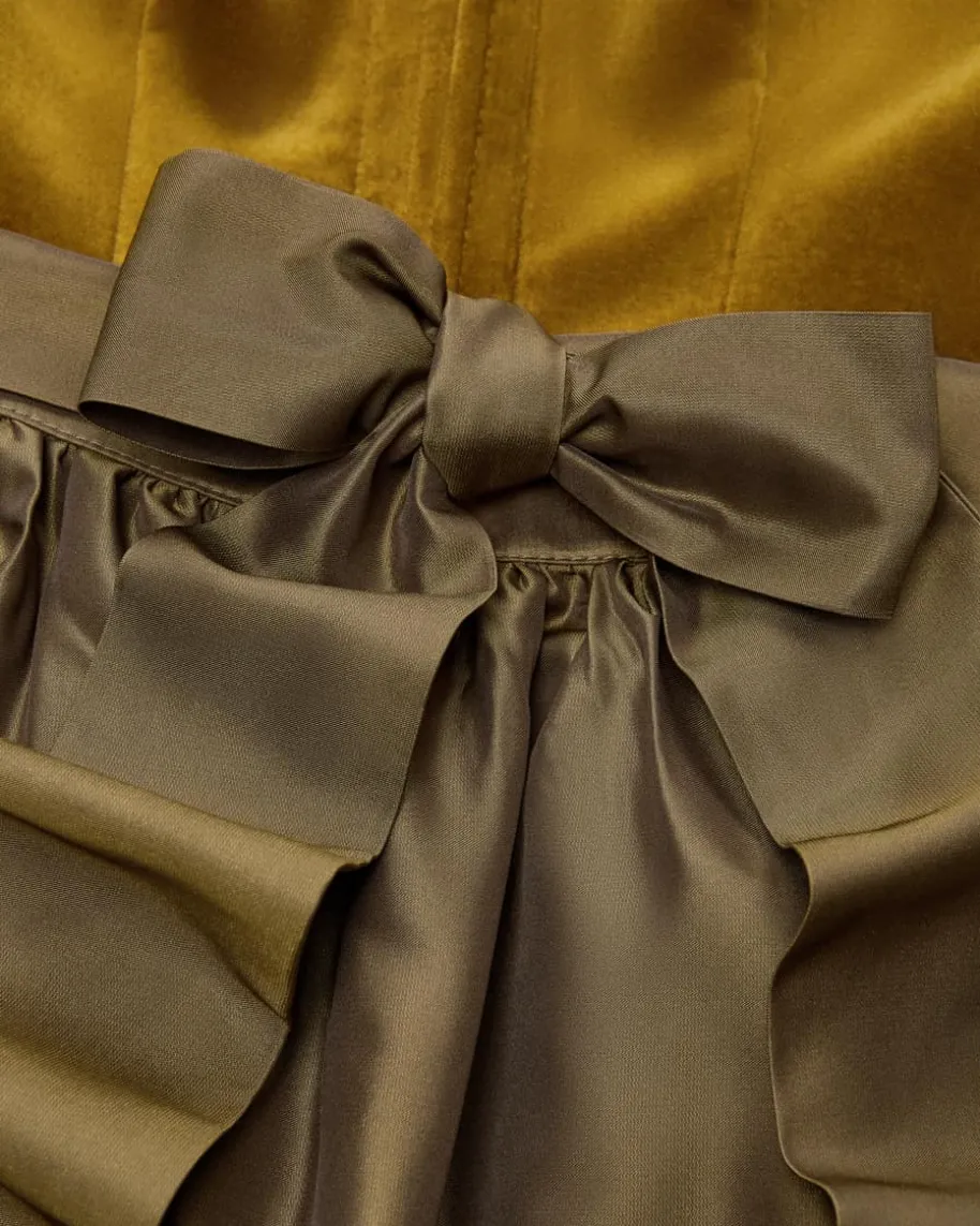 Ancona Dirndl lang mit Schürze für Damen von Kinga Mathe inOcker und Braun. MitLiebe zum Detail entwirft das deutsche Label aufwendigeTrachten-Kreationen mitdem gewissen Etwas und überzeugt mit erlesener Stoffauswahlsowie kreativeDesigns. Das Modell überzeugt mit klassischem Mieder aushochwertigem Baumwoll-Samt, während der Unterrock eine feminine Passform verleiht.Die changierendeSchürze aus Satin komplettiert das abstrakte Allover-Dessindes Dirndlsharmonisch.