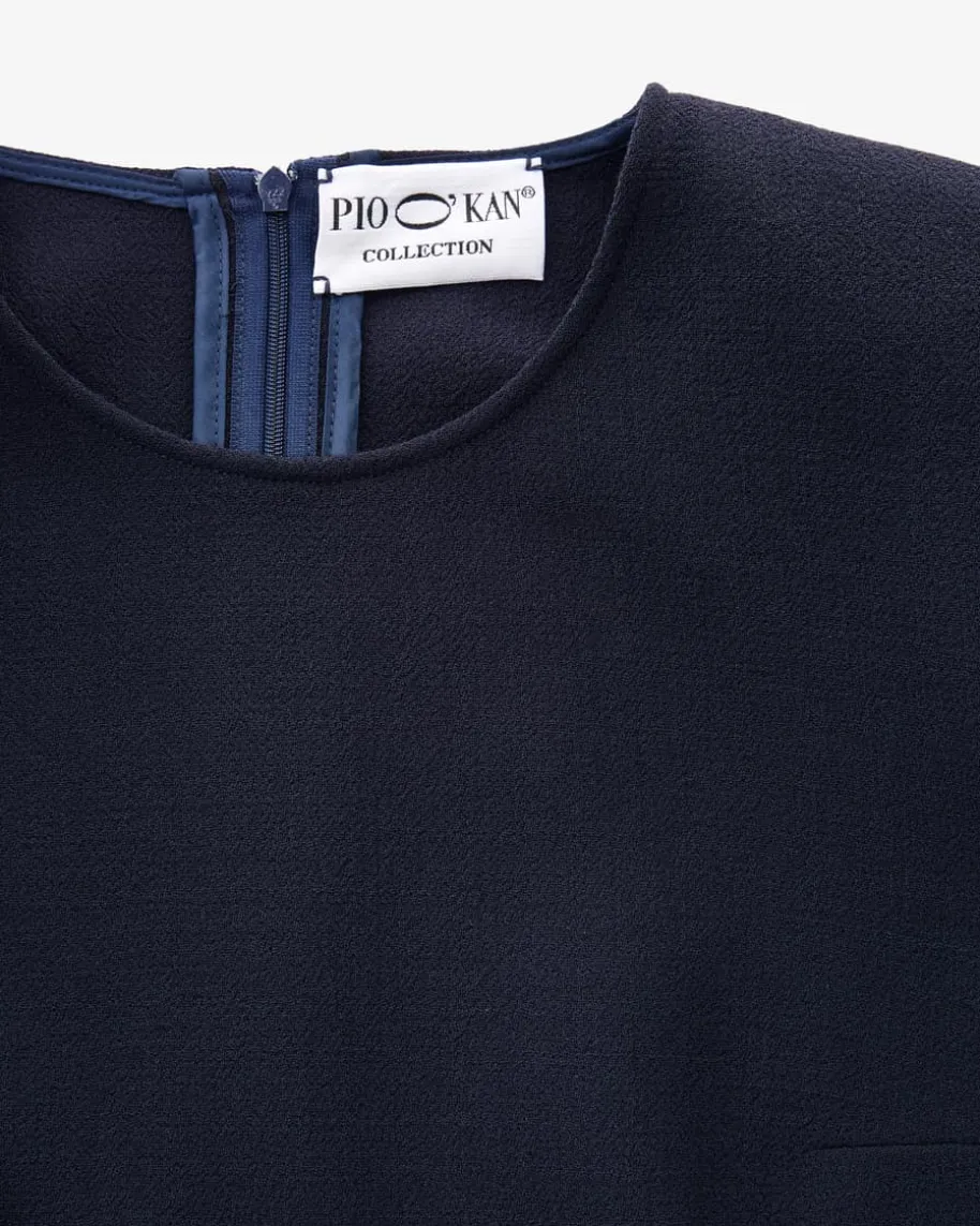 Angelina Kleid für Damen von Pio O’Kan in Marine. Zeitloser Luxus und moderneEleganz prägen den Stil dieses Modells – Die taillierte Silhouette und derausgestellte Rock garantieren femininen Schwung, während die feste Double-Crepe-Qualität einen stilvollen Begleiter kreiert.