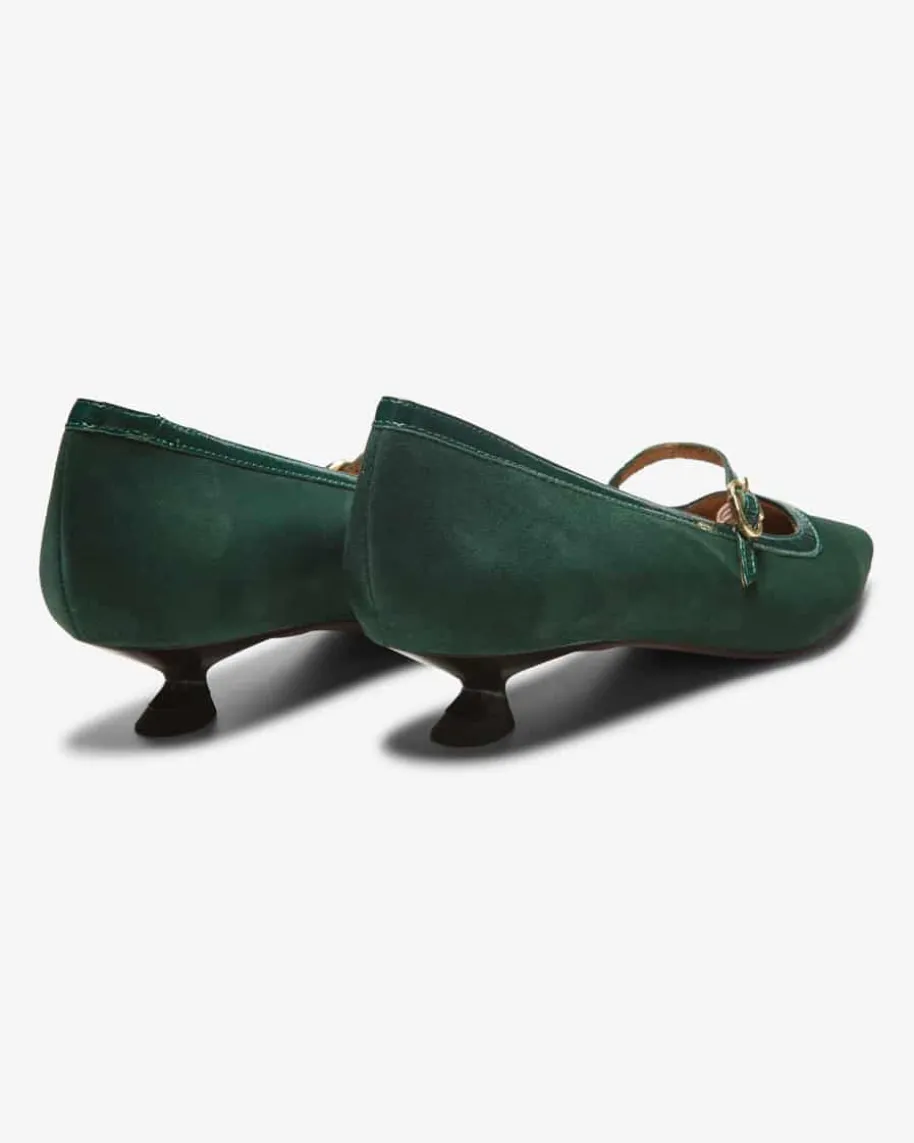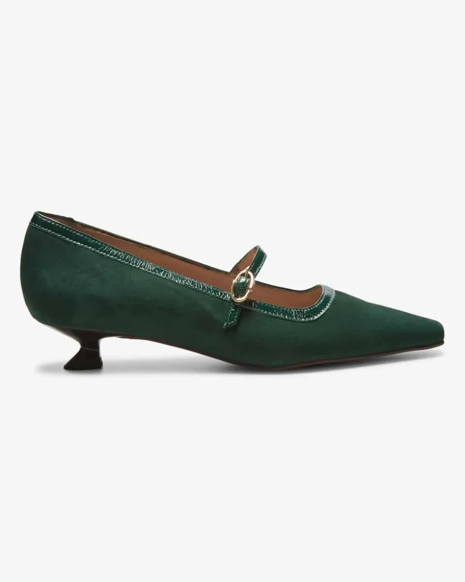 Ante Pumps für Damen von Pedro Miralles in Dunkelgrün. Die spanische Schuhmarkesteht für Komfort, mediterranen Stil und feminine Silhouetten – made in Spain.Das Modell aus hochwertigem Leder punktet dank niedrigem Absatz sowie schmalem-Riemen als modisch-femininer Favorit.