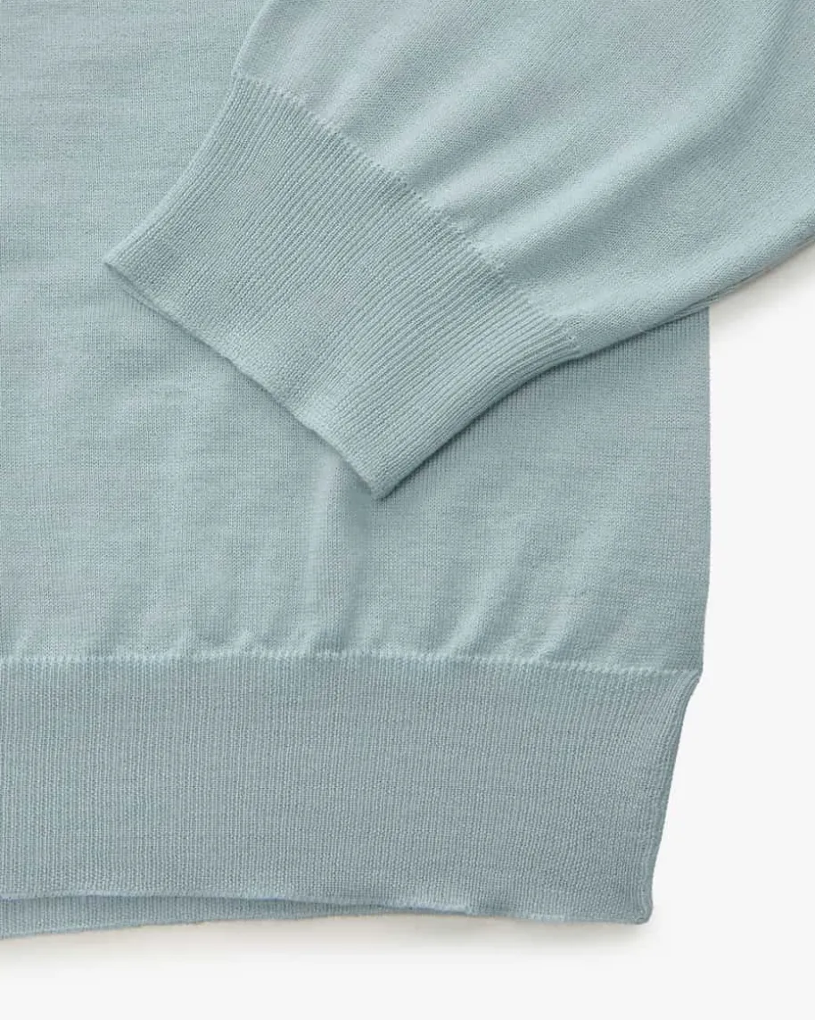 Argentina M.L. Pullover für Herren von Fedeli in Eisblau. Die sehrhochwertigeSuper 140 Schurwoll-Qualität verleiht ein besonders angenehmes Tragegefühl,während das cleane Design einen vielseitigen Casual-Begleiter für klassischeOutfits schafft. Zudem wird dank einer besonderen Webtechnik eine perfektePassform gewährleistet.