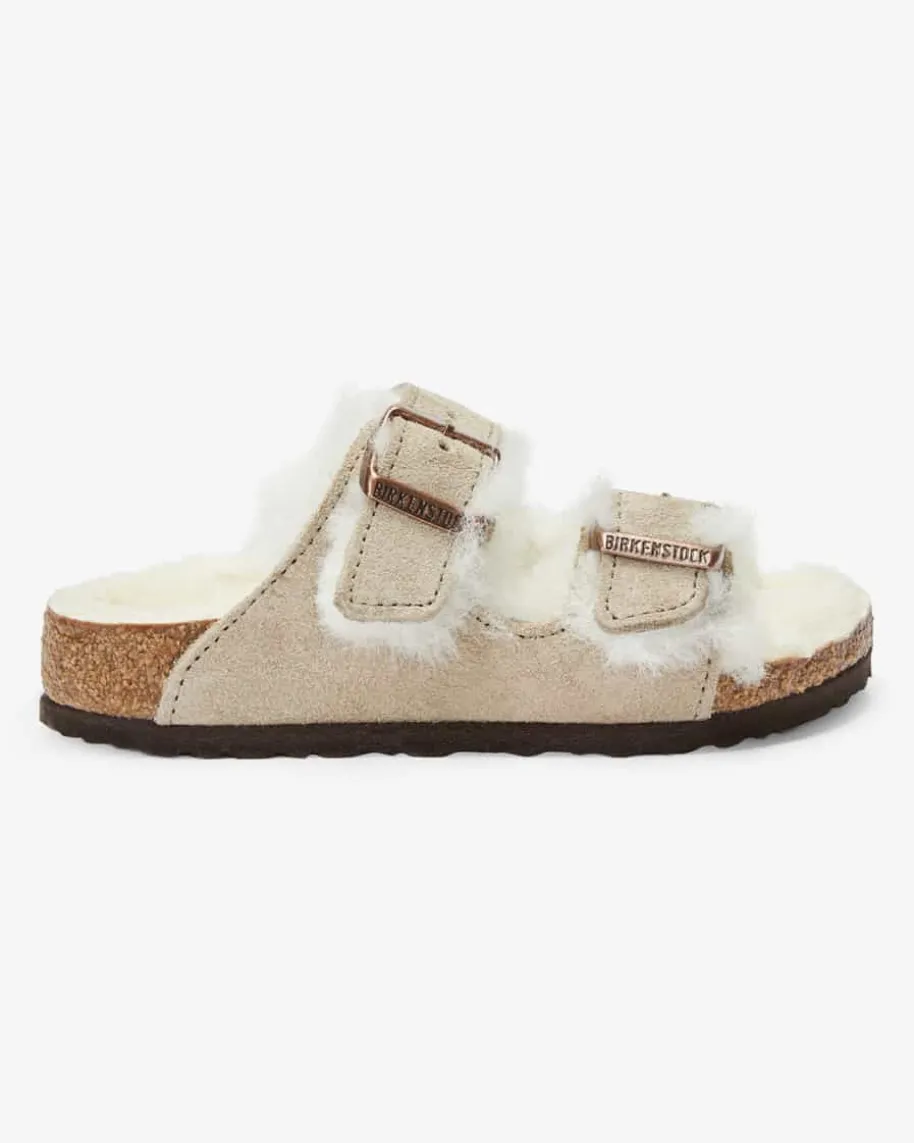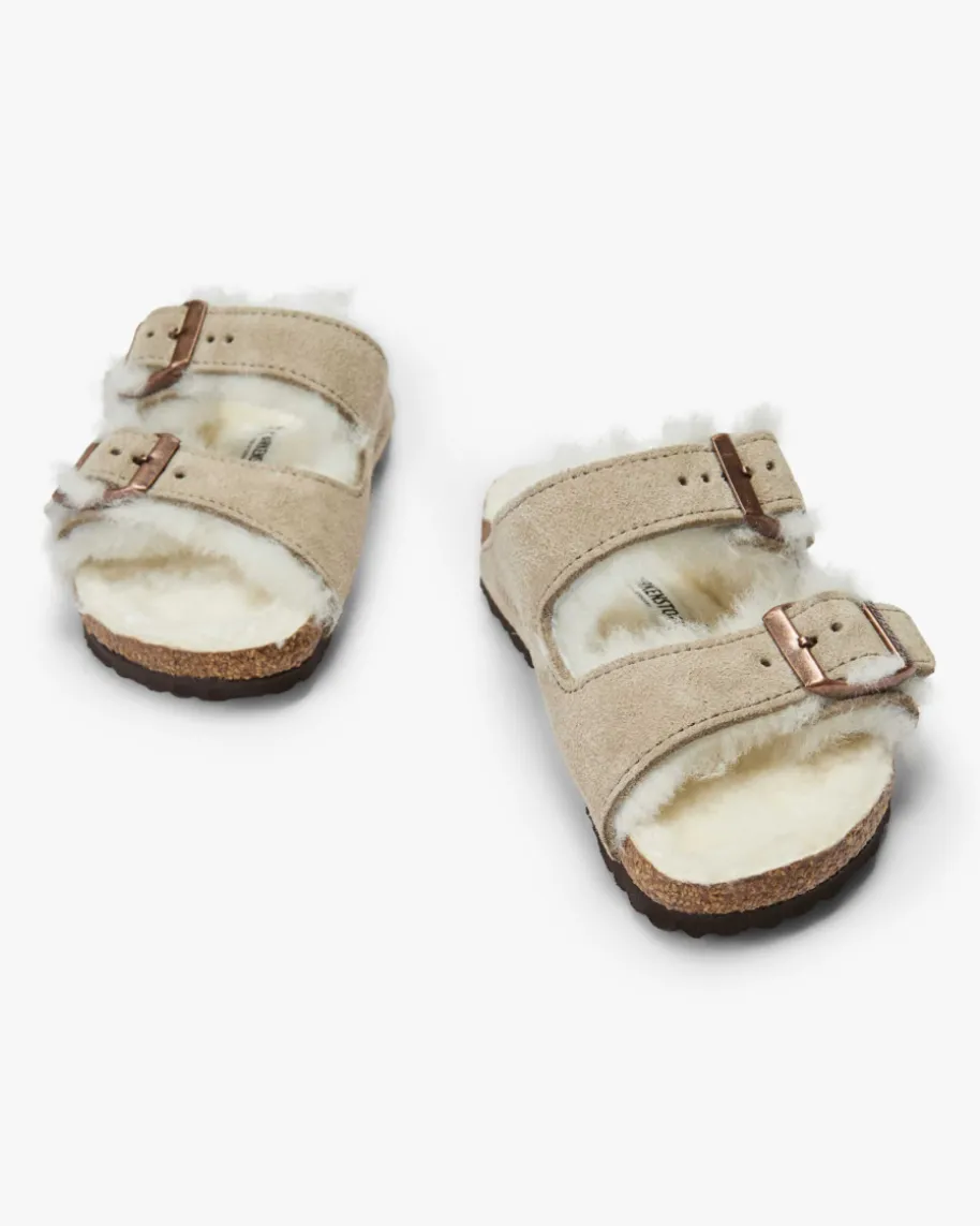 Arizona Shearling Sandalen für Kinder von Birkenstock in Stein. Seit über 200Jahren revolutioniert Birkenstock die Schuhindustrie immer neu. Mit seinemeinzigartigen, anatomischen Fußbett hat Birkenstock ein innovativesProduktkonzept auf den Markt gebracht, das bis heute Bestand hat. Während diecharakteristischen Riemen mit zwei Dornschließen sowie die Logo-Prägung einencharakteristischen Charakter verleihen, schafft das Veloursleder-Design einenhochwertigen Look. Die weiche Shearling-Innenseite sorgt zudem für wärmendeTragemomente.