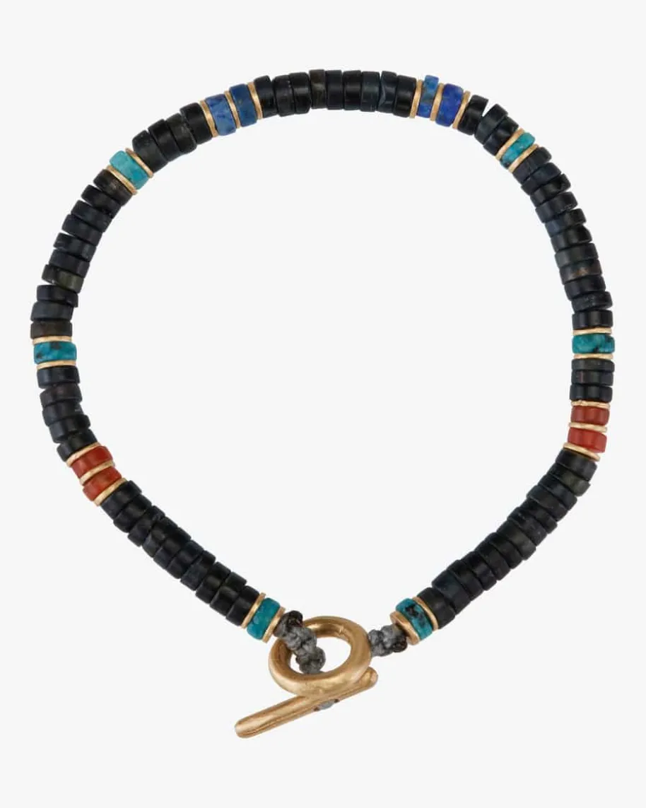 Armband für Herren von M. Cohen in Türkis und Schwarz. Das Schmuckstück erhältdank verschiedener Edelsteine eine einzigartige Optik und besticht durch dasstilvolle Muster- ein besonderes Piece, das maskuline Looks gekonnt vollendet.