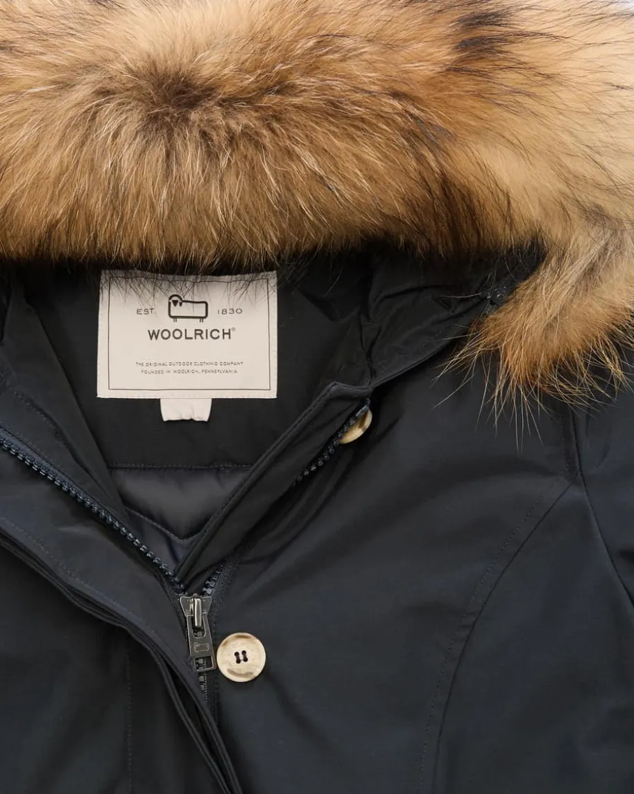 Artic Racoon Parka für Damen von Woolrich in Navy. 1830 von John Rich inPennsylvania gegründet, erfreute sich das Label damals schon großer Beliebtheit– vor allem im Outdoor-Bereich. Robuste funktionale Jacken, Parkas und Mäntelstanden dabei im Vordergrund und bilden, neben der dazugekommenen Freizeitmode,nach wie vor immer noch den Mittelpunkt der vielseitigen Kollektionen vonWoolrich. Das Modell präsentiert sich dank klassischer Aufmachung als zeitloserFavorit, während der Pelzbesatz für besonderes Augenmerk sorgt.