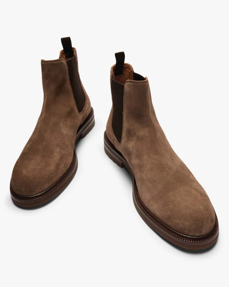 Aston Flexi 004 Boots für Herren von Officine Creative in Hellbraun undDunkelbraun. Ein stilvoller Klassiker Made in Italy – Das Modell präsentiertsich dank der hochwertigen Veloursleder-Aufmachung in edler Optik, während dieGummisohle und charakteristischen Stretch-Einsätze einen hohen Komfort bieten.