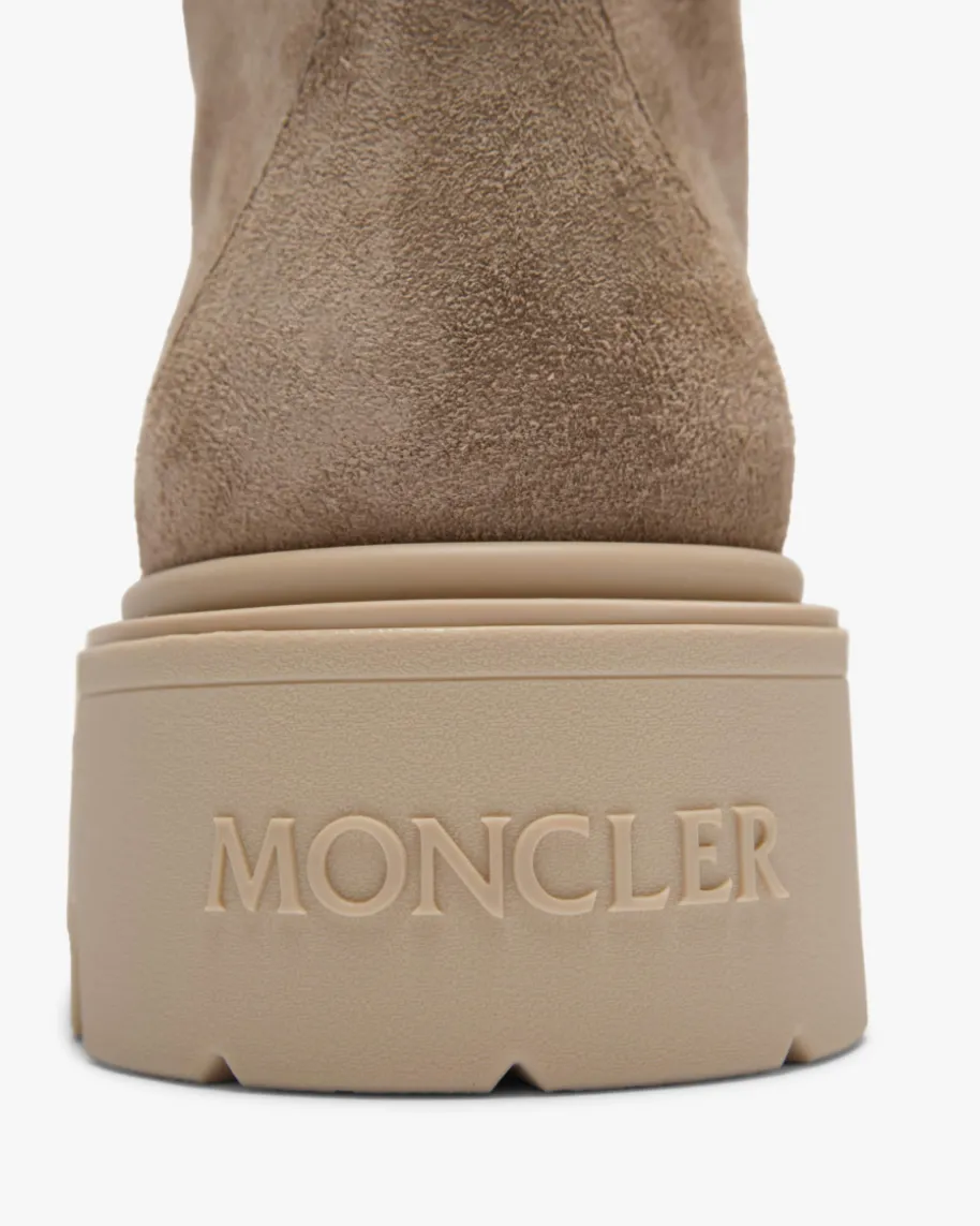 Aurea Boots für Damen von Moncler in Taupe. Das Modell zeichnet sich durch diehochwertige Veloursleder-Qualität aus, während die markante Profil-Plateausohlefür einen modischen Twist sorgt. Der gepolsterte Schaft verspricht zudemzusätzlichen Komfort.