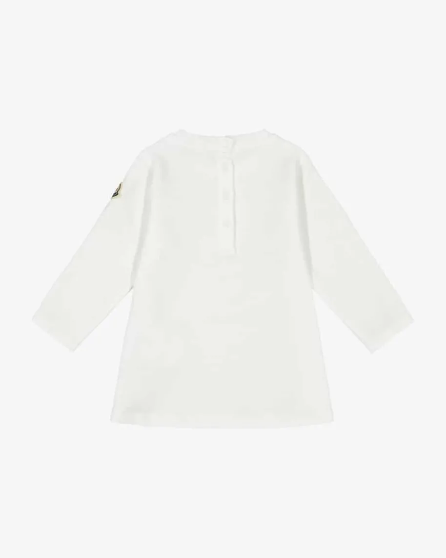 Baby-Zweiteiler von Moncler Enfant in Weiß, Navy und Pink. Das süße Modellbesticht dank der elastischen Baumwoll-Qualität mit hohem Tragekomfort, währendder kontrastierende Logo-Print und die Ziernähte niedliche Akzente setzen. Dieschlichte Hose rundet den Look gekonnt ab.