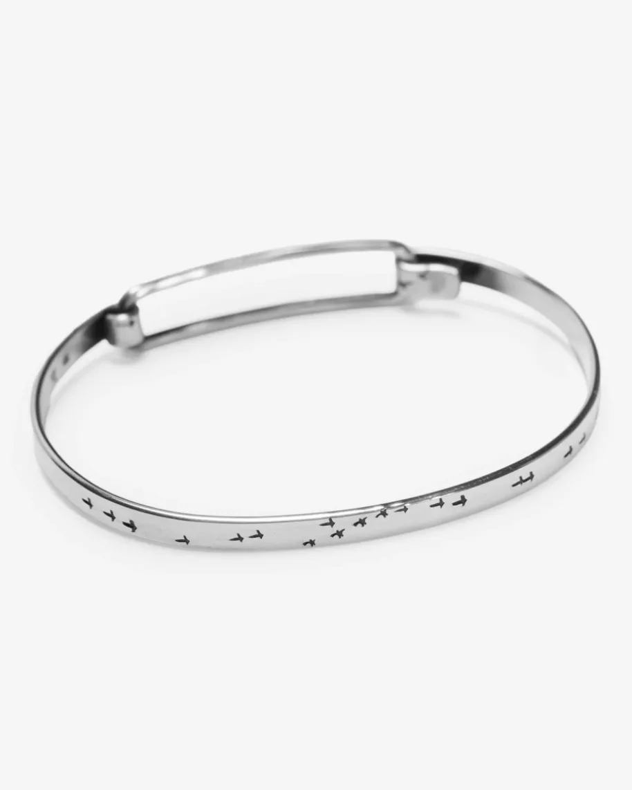 Band Bird Flight Armreif für Herren von Werkstatt München in Silber.Handgefertigt in Deutschland – Die Münchner Manufaktur begeistert mit erlesenenund ausgewählten Stoffen sowie höchster Handwerkskunst. Das minimalistischgehaltene Modell zeichnet sich durch sein cleanes Design aus, während diefiligrane Prägung der Vögel einen extravaganten Look kreiert. Zudem ist dermarkante Haken-Verschluss ein wahrer Hingucker.
