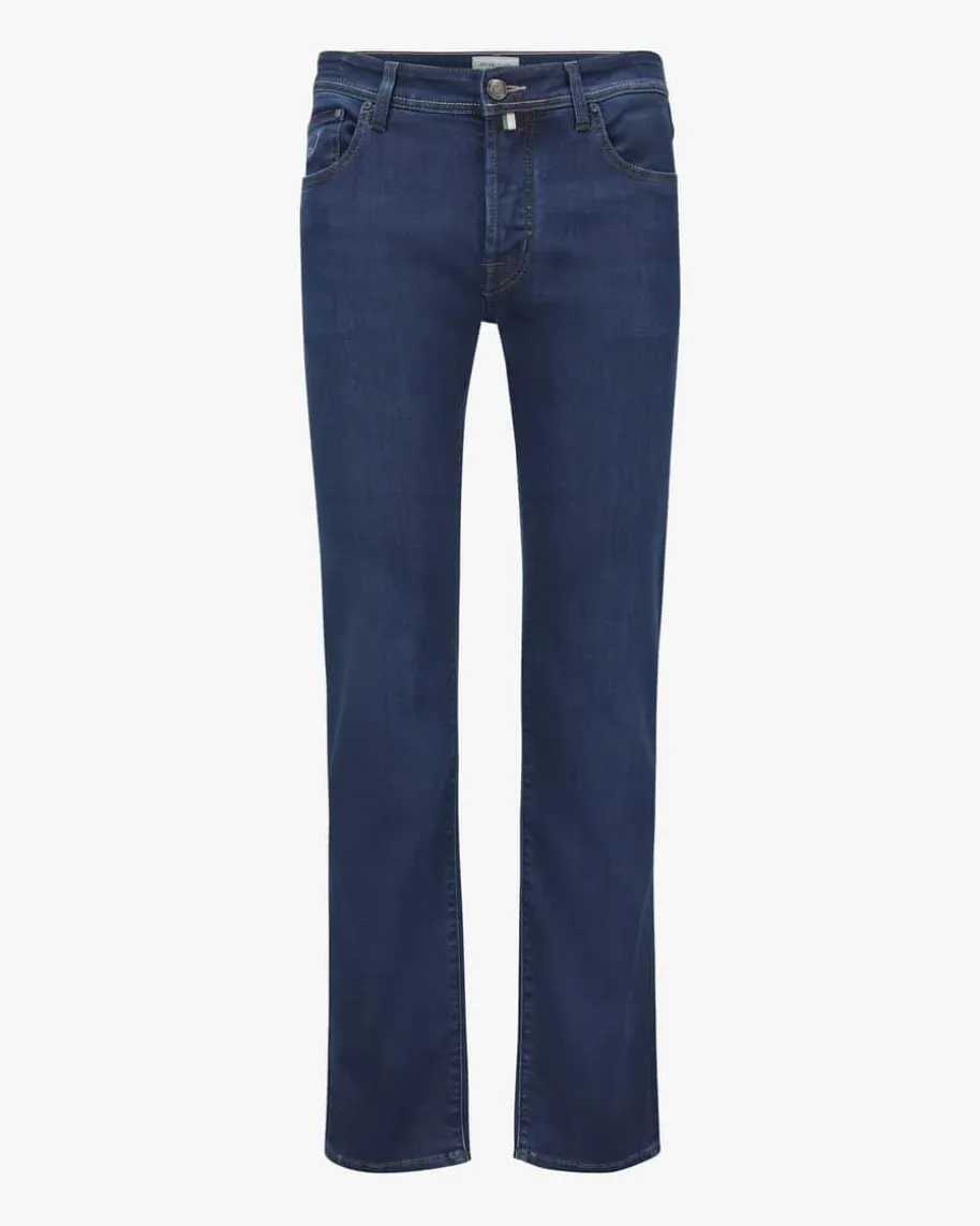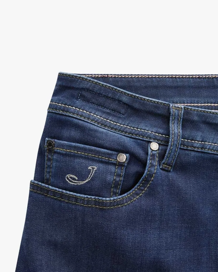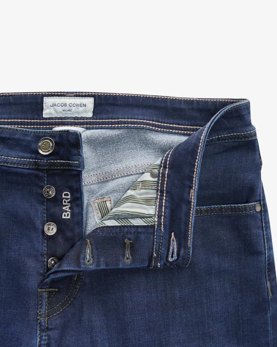 Bard Jeans Slim Fit für Herren von Jacob Cohen in Dunkelblau und Grün. Made inItaly – Dank hochwertigem und elastischem Baumwoll-Lyocell-Mix erhält das schmalgeschnittene Modell eine besonders softe Denim-Haptik und garantiert somithöchsten Tragekomfort, während die klassische Waschung in Kombination mitlabeltypischen Details einen zeitlosen Alltags-Favoriten schafft.