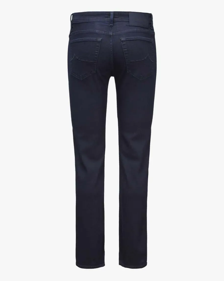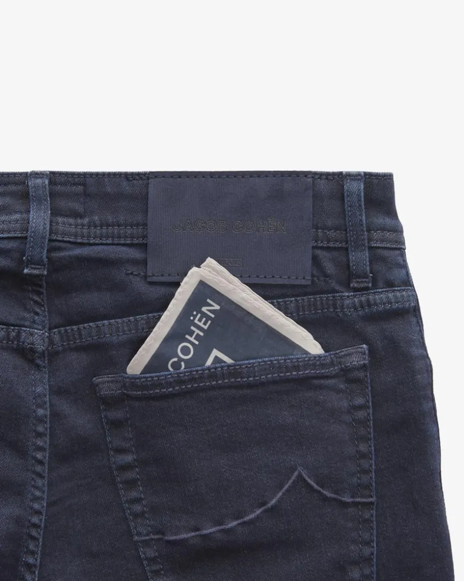 Bard Jeans Slim Fit für Herren von Jacob Cohen in Nachtblau. Made in Italy -Dank hochwertigem und elastischem Baumwoll-Lyocell-Mix erhält das schmalgeschnittene Modell eine softe Denim-Haptik und garantiert zugleich hohenTragekomfort, während die klassische Waschung in Kombination mit labeltypischenDetails einen zeitlosen Alltags-Favoriten schafft.