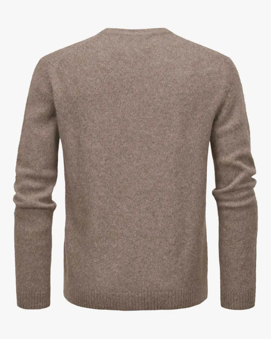 Baxter Cashmere-Seiden-Pullover für Herren von Lisa Yang in Nougat. Das legergeschnittene Modell besticht dank hochwertigem Cashmere-Seiden-Mix mit einembesonders weichen Griff, während das schlichte Strick-Design in melierter Optikeinen vielseitigen Alltagsbegleiter kreiert.