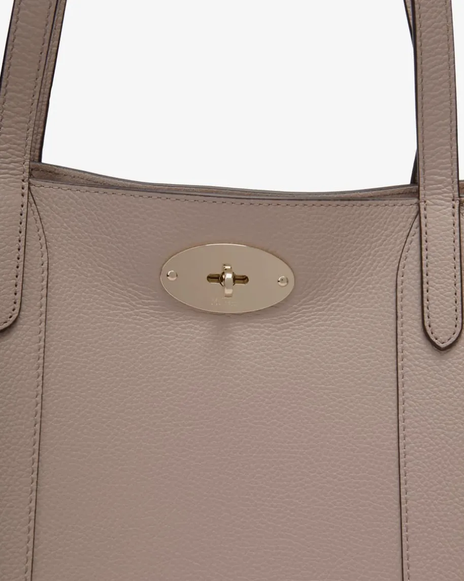 Bayswater Tote Small Shopper für Damen von Mulberry in Taupe. Das Modellaus hochwertig genarbter Leder-Qualität avanciert dank luxuriöser Aufmachung zumstilvollen Accessoire für modische Looks. Die offene Form mit raffiniertem Dreh-Verschluss vervollständigt das edle und zeitlose Gesamtbild gekonnt.