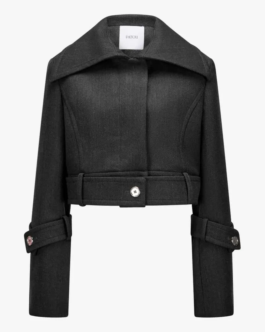 Belted Short Jacke für Damen von Patou in Grau. Das Pariser Label wurde 2019 neuinterpretiert und verbindet feminine Mode mit Couture-Anspruch undNachhaltigkeit. Auch dieses Modell begeistert mit verkürzter Passform undmarkantem Kragen, während die dekorativen Riegel einen modischen Hingucker-Lookschaffen.