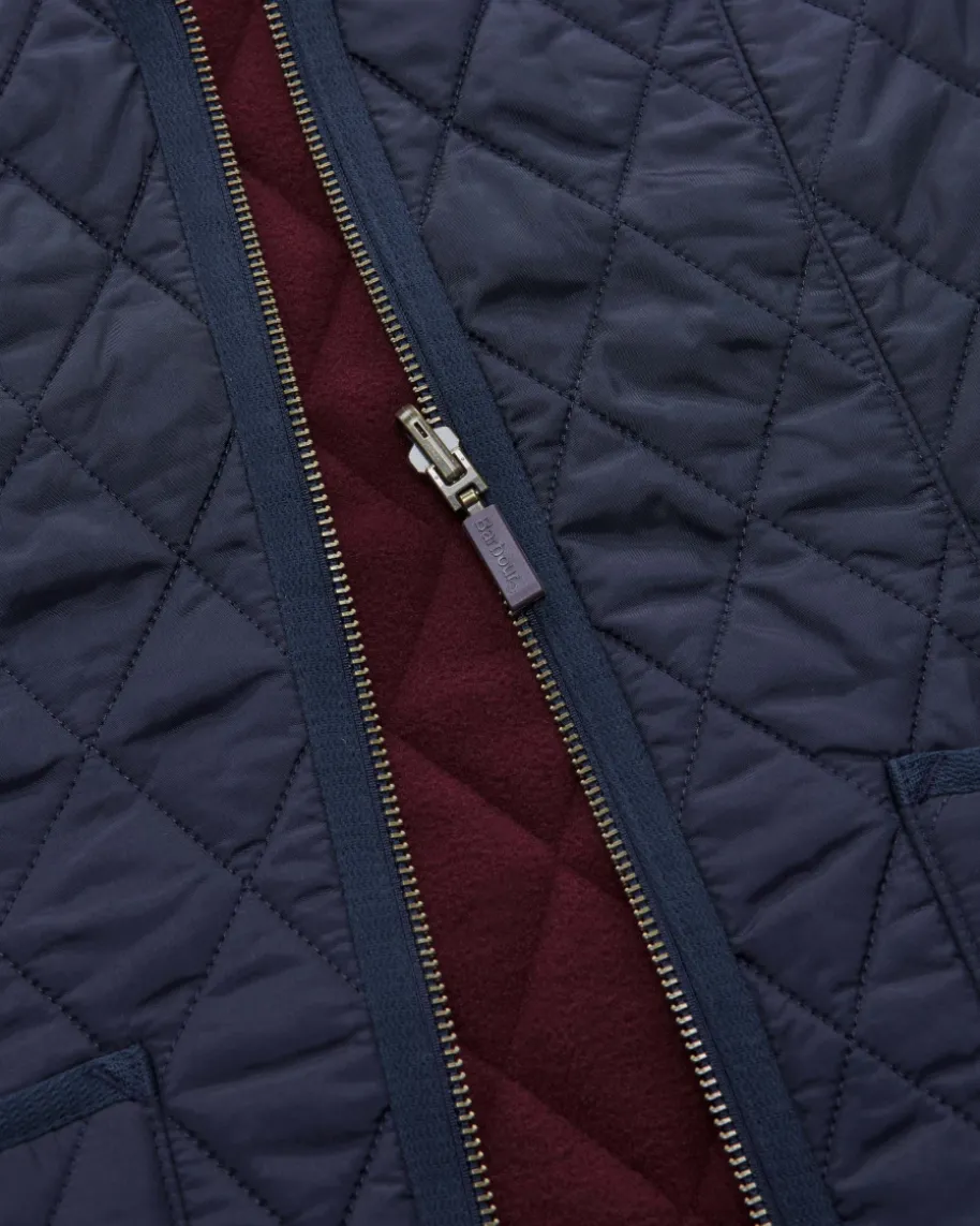 Betty Liner Steppweste für Damen von Barbour in Navy. Das 1894 gegründetebritische Traditionshaus ist weltberühmt für gewachste Outdoorjacken mitHeritage-Flair. Dieses Modell präsentiert sich dank der taillierten Passformsowie dem Rautenstepp-Design als vielseitiger Layering-Favorit, welcher durchdie sportive Paspelierung und das wärmende Fleece-Futter gekonnt abgerundetwird.