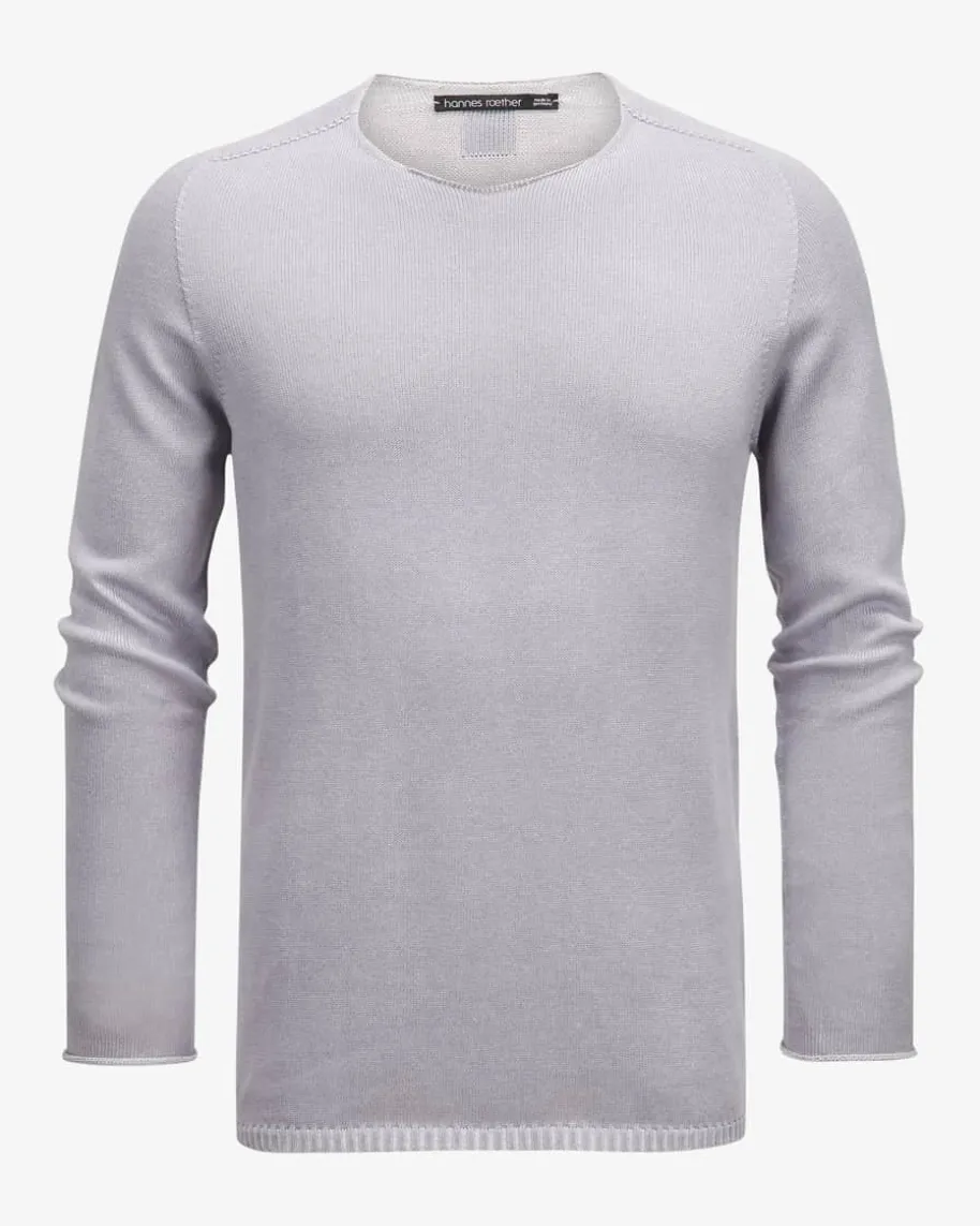 Pullover für Herren von Hannes Roether in Flieder und Off-White. Während derhochwertige Baumwoll-Mix mit Seiden- und Cashmere-Anteil eine angenehme Haptikkreieren, verleihen das Doubleface-Strickdesign zusammen mit labeltypischenDetails dem Modell einen modernen Charakter.