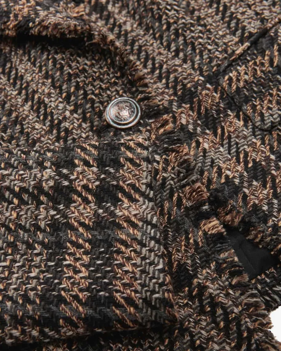 Blazer für Damen von Luisa Cerano in Dunkelblau, Beige und Cognac. Das Modellüberzeugt mit angenehmen Tragemomenten, während das Karo-Dessin und diegefransten Kanten einen besonderen Begleiter für vielseitige Looks schaffen.