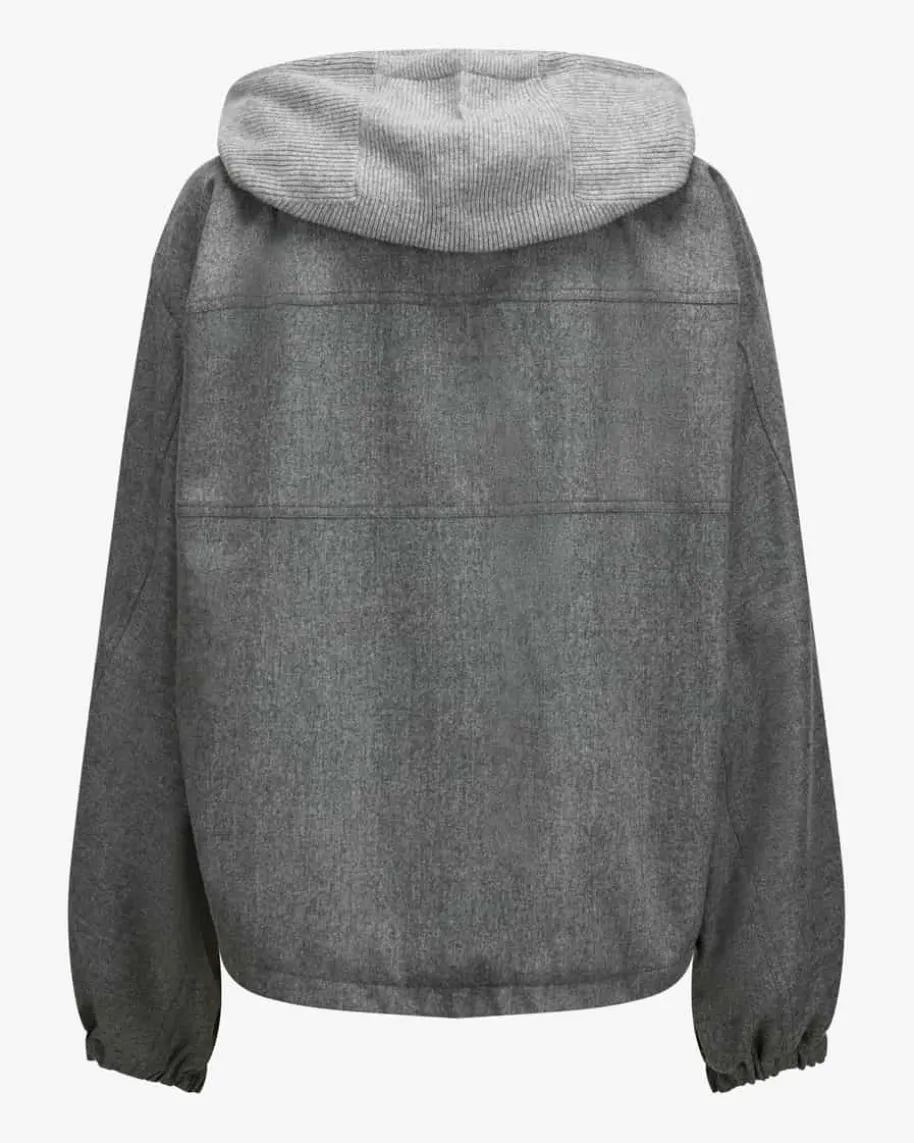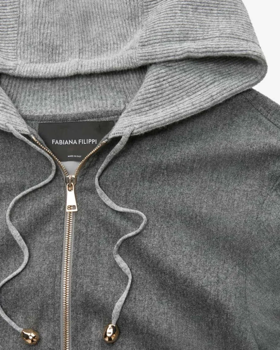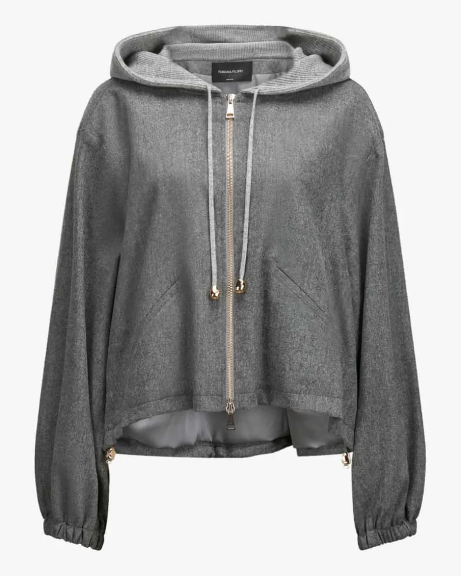 Blouson für Damen von Fabiana Filippi in Anthrazit. Die italienische Marke stehtfür moderne Eleganz, hochwertige Materialien und dezente Farbwelten. Das Modellüberzeugt sowohl haptisch als auch optisch mit leichtem Merinowolle-Mix zummodischen Blickfang für stilvolle Pre-Fall-Looks. Die legere Kapuze in weicherStrick-Verarbeitung rundet den sportiven Style gekonnt ab.
