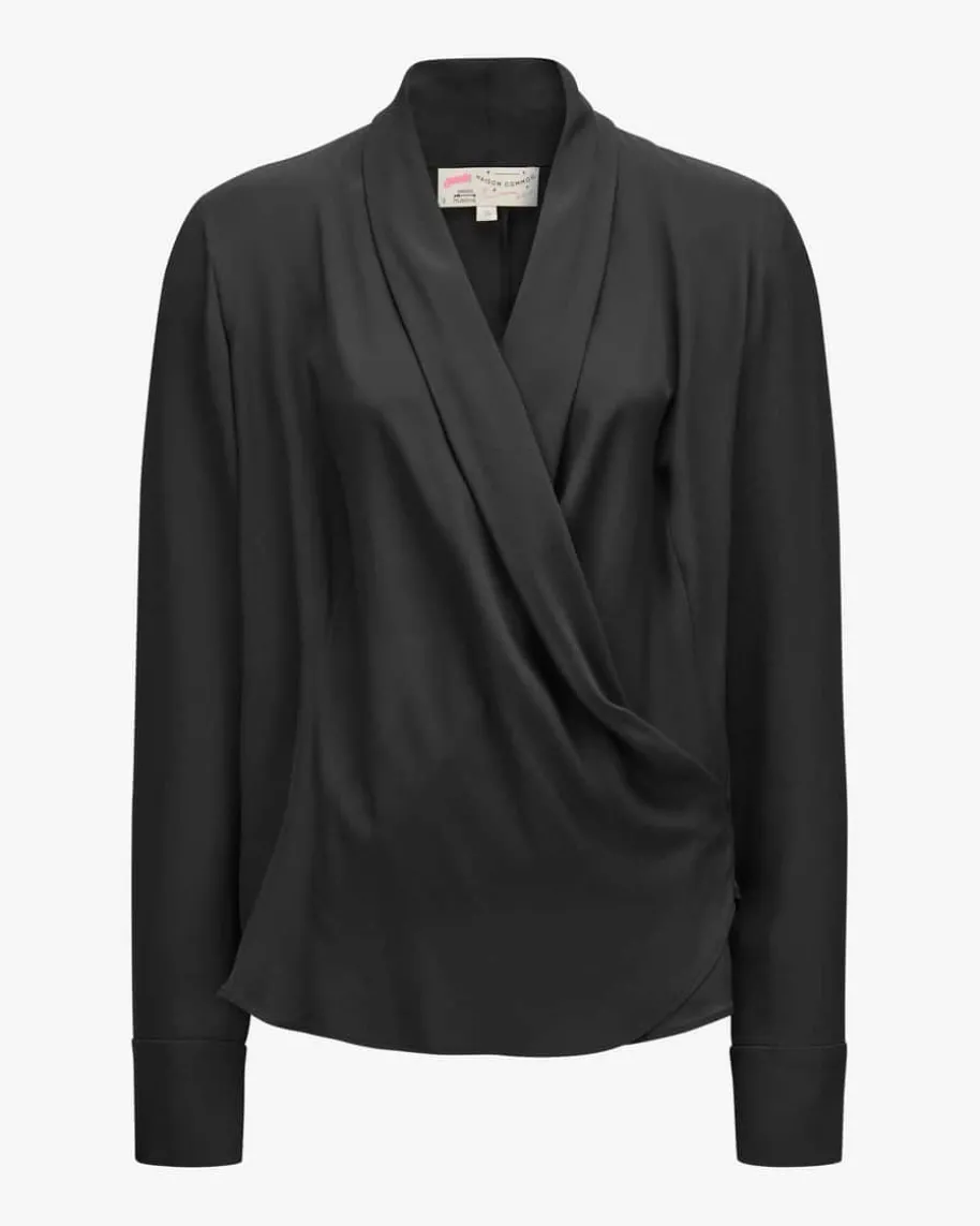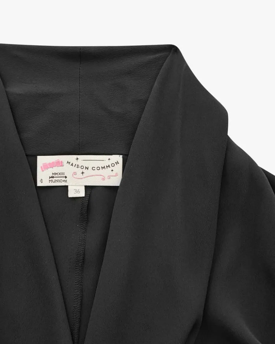 Bluse für Damen von Maison Common in Schwarz. Das Label verkörpert Lebensfreudeund Esprit, die sich neben femininem Charme mit farbenfrohen Designs sowieMustern in den Kollektionen wiederfinden. Auch dieses Modell begeistert dank desfließenden Material-Mix mit Seide, während die raffinierte Wickel-Optik einenbesonderen Begleiter für elegante Styles schafft.