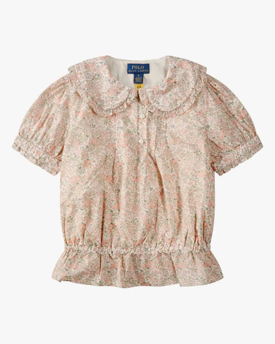 Blusenshirt für Mädchen von Polo Ralph Lauren in Rosa, Salbei und Weiß. Daszweilagige Modell mit zartem Blumenmuster präsentiert sich dank der leichtenBaumwoll-Qualität in angenehmer Haptik, während niedliche Elemente wie derBubikragen mit Rüschen-Details sowie der elastische Saum das Gesamtbildmädchenhaft inszenieren.