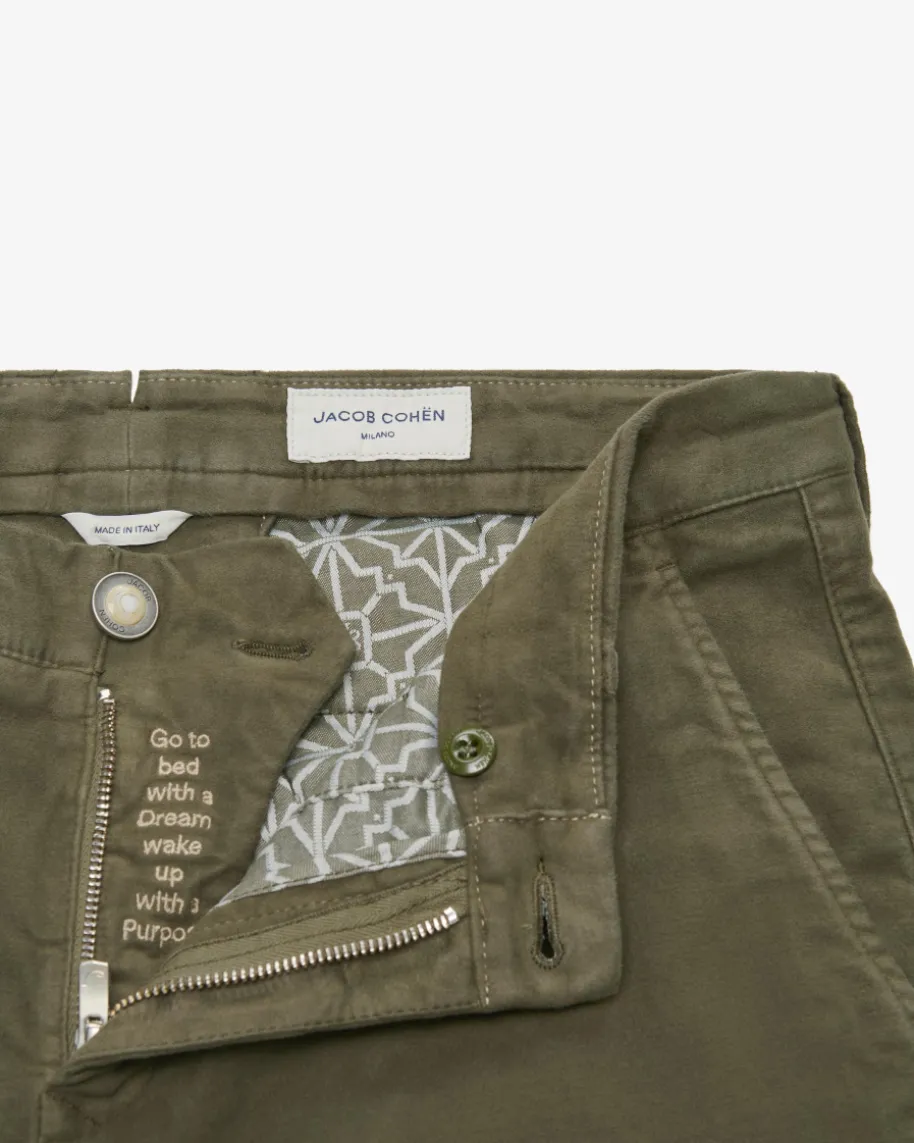 Bobby Flanellhose Slim Fit für Herren von Jacob Cohen in Khaki. Made in Italy -Das Modell überzeugt durch die softe, elastische Flanell-Qualität sowohlhaptisch als auch optisch und avanciert dank klassischer Details zum perfektenCasual-Piece für Ihre Alltags-Garderobe.