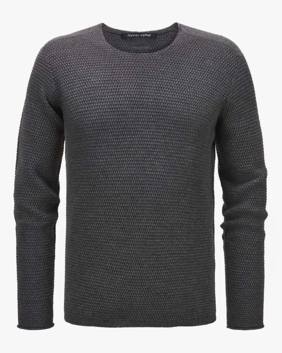 Bolshov Pullover für Herren von Hannes Roether in Anthrazit. Essentials fürmodebewusste Herren – Während das raffinierte, grobe Strick-Design aus reinerSchurwoll-Verarbeitung einen komfortablen Look und moderne Optik schafft, setztder Rollsaum am Ärmel legere Akzente.