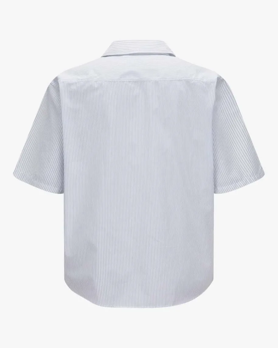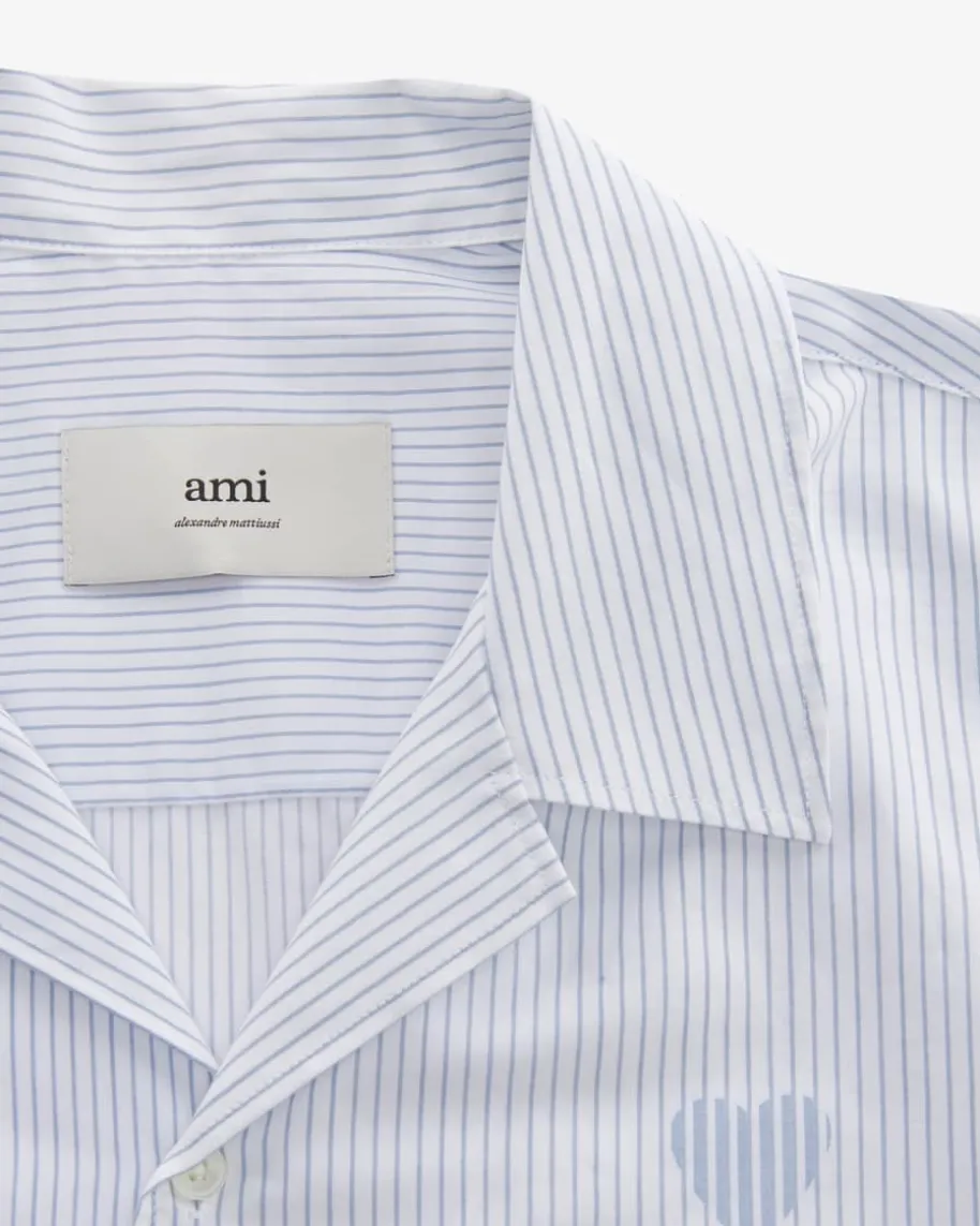 Bowlinghemd für Herren von Ami Paris in Weiß und Hellblau. Das Modellpräsentiert sich in moderner Aufmachung, während das schlichte Streifen-Dessineinen zeitlosen Look für Ihren Alltag kreiert. Zugleich rundet daskontrastierende Logo-Detail das Gesamtbild harmonisch ab.