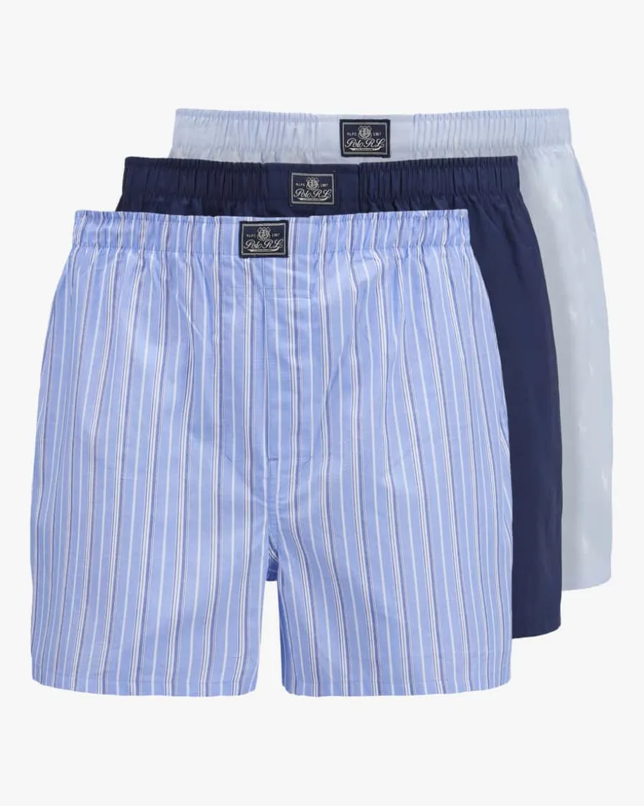 Boxershorts 3er-Set für Herren von Polo Ralph Lauren in Hellblau, Navy und Blau.Hautsympathische Baumwoll-Qualität und das schlichte Design zeichnen das Set,bestehend aus drei Boxershorts, aus. Maximaler Tragekomfort wird durch denGummibund garantiert, während sich auf der Vorderseite ein klassischer Eingriffbefindet.