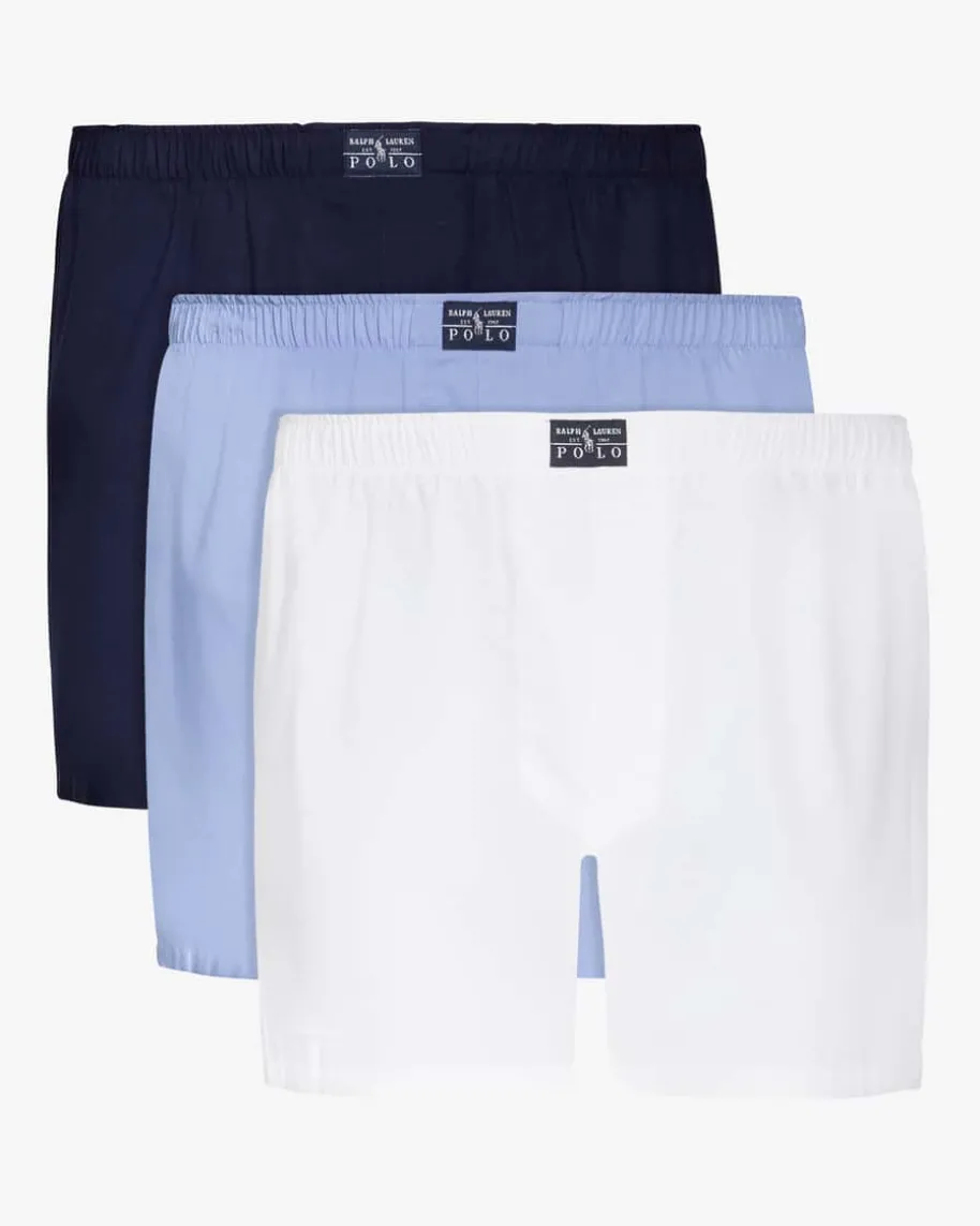 Boxershorts 3er-Set für Herren von Polo Ralph Lauren in Weiß und Blau. Hautsympathische Baumwoll-Qualität und eine minimalistische Aufmachung zeichnen das Set, bestehend aus drei Boxershorts, aus. Maximaler Tragekomfort wird durch den Gummibund garantiert, während sich auf der Vorderseite ein klassischer Eingriff befindet.