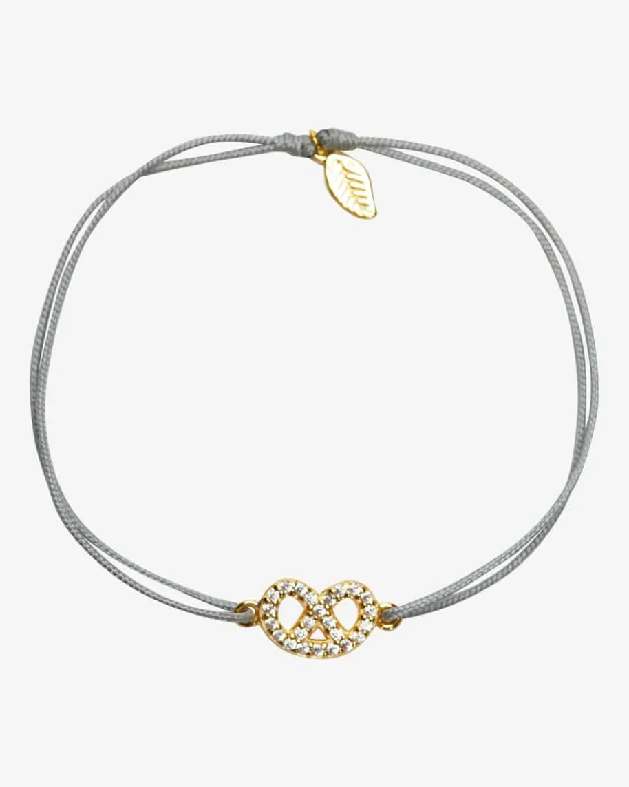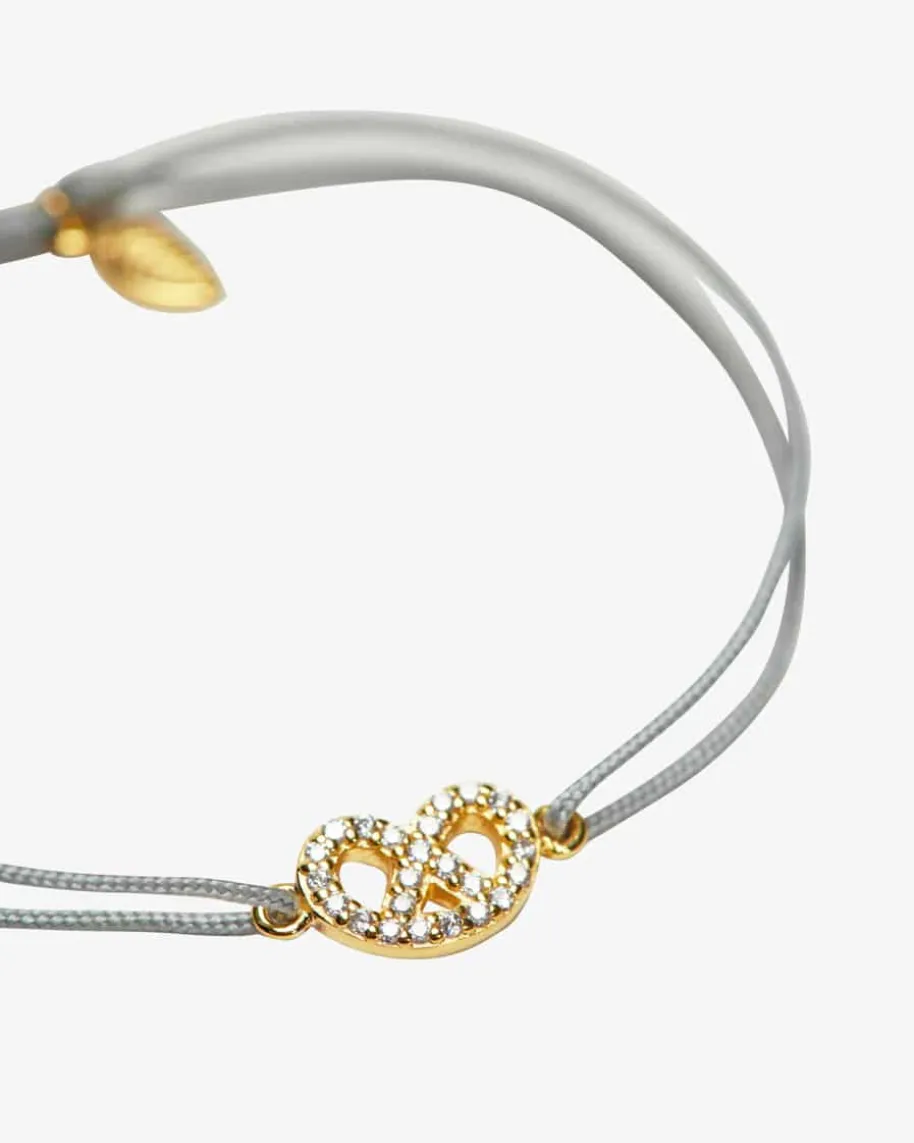 Brezn Zirkoni Glücksbändchen für Damen von Leaf in Gold und Grau. Dank dervergoldeten Brezel mit Zirkonia-Besatz präsentiert sich das Modell als modischesAccessoire für stilbewusste Damen, während das verstellbare Bändchen denperfekten Sitz verspricht.