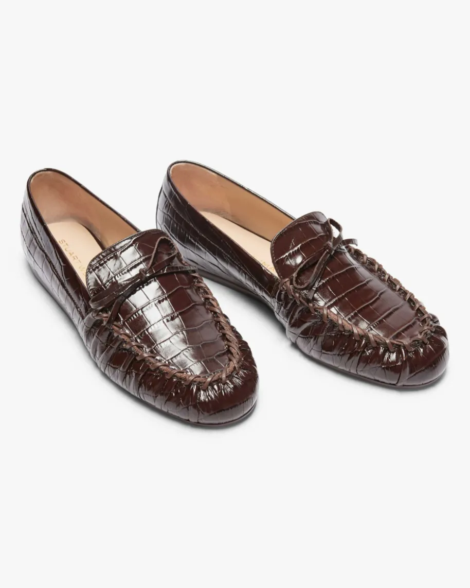 Britt Bow Mokassin für Damen von Stuart Weitzman in Walnuss. Die US-Marke istweltbekannt für elegante Pumps, Overknees und Bridal-Heels – luxuriös, abertragbar. Dieses Modell überzeugt dank des modischen geprägten Glattleders alsbesonderer Favorit, während die klassische Mokassin-Optik ein harmonischesGesamtbild kreiert.