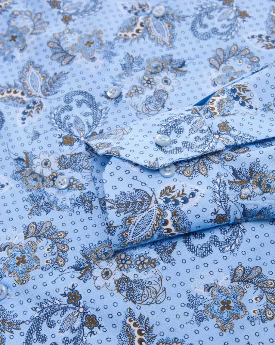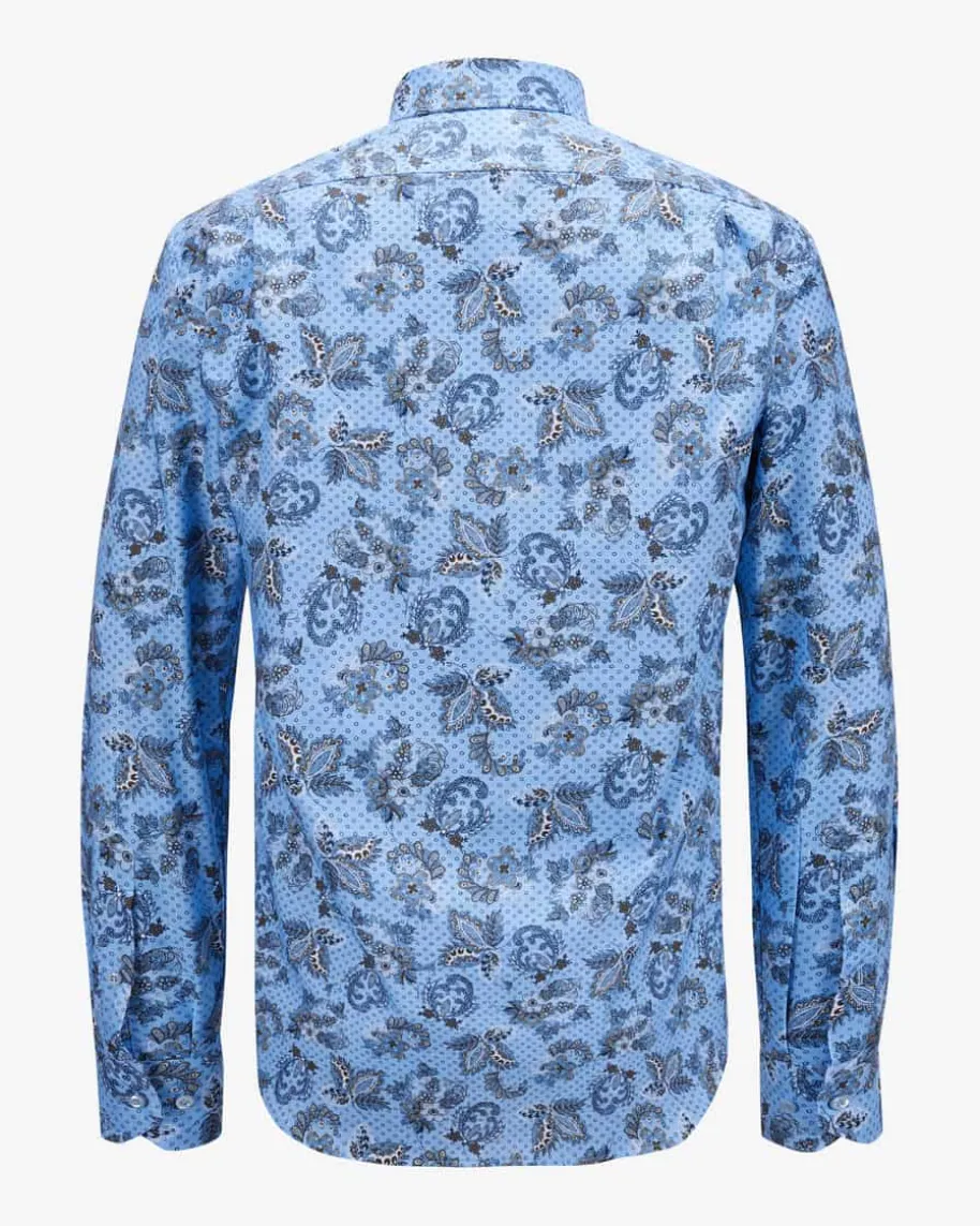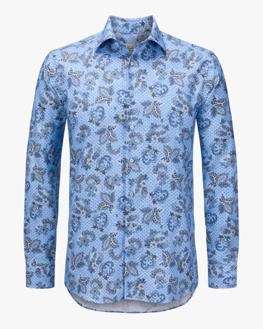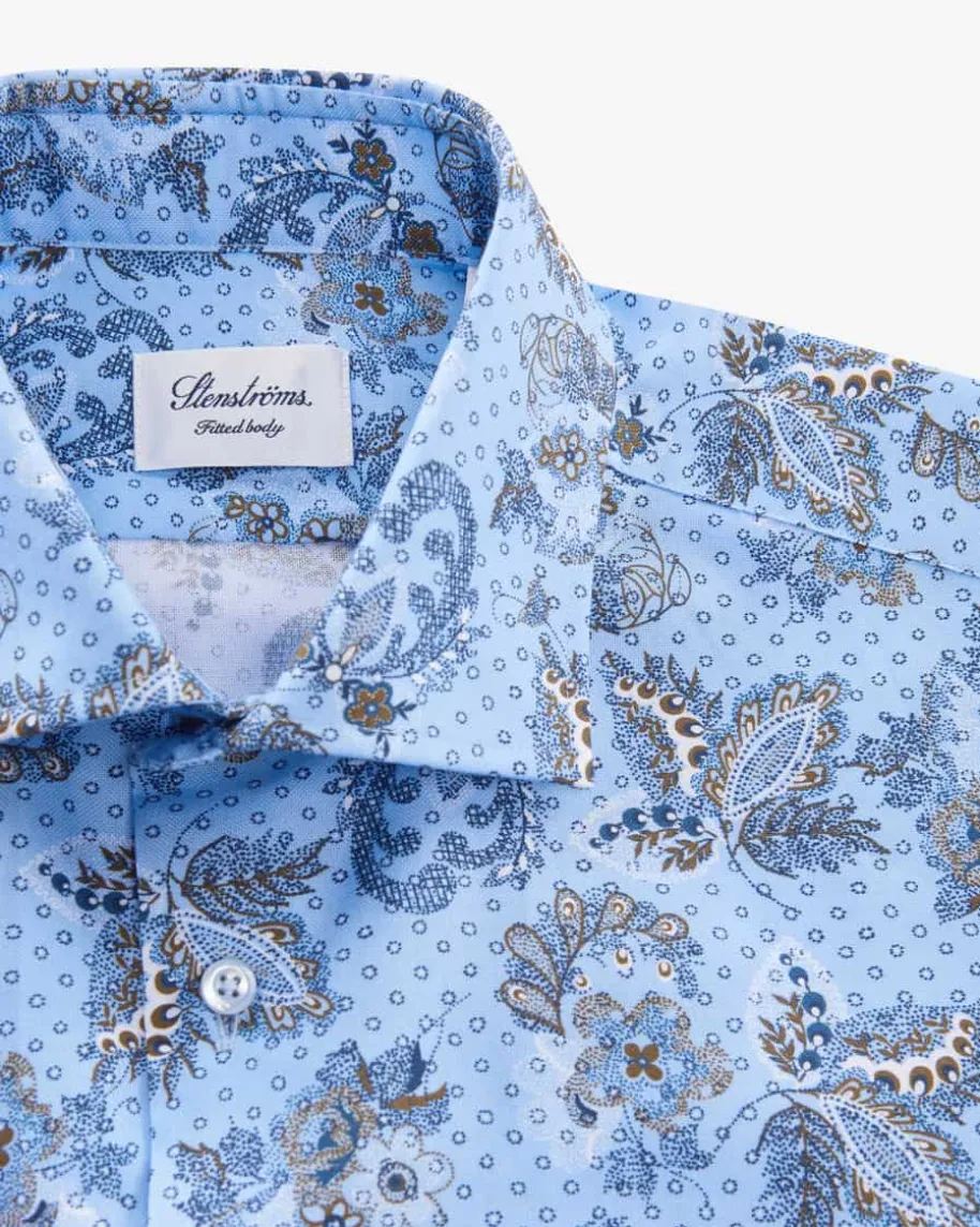 Businesshemd Fitted Body für Herren von Stenströms in Hellblau, Dunkeloliv undNavy. Stilvoll und modern zugleich präsentiert sich das Modell in klassischerBaumwoll-Qualität, während das Paisley-Muster einen besonderen maskulinenBegleiter kreiert.