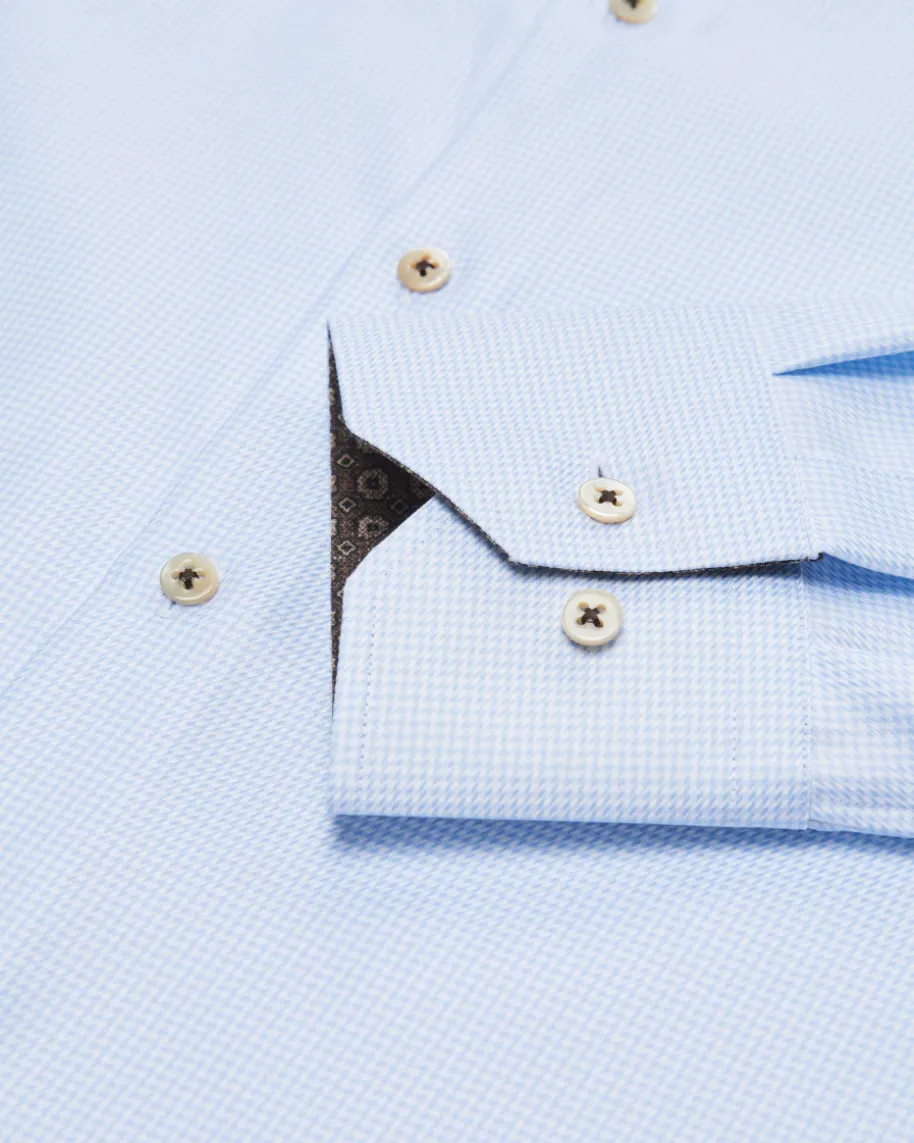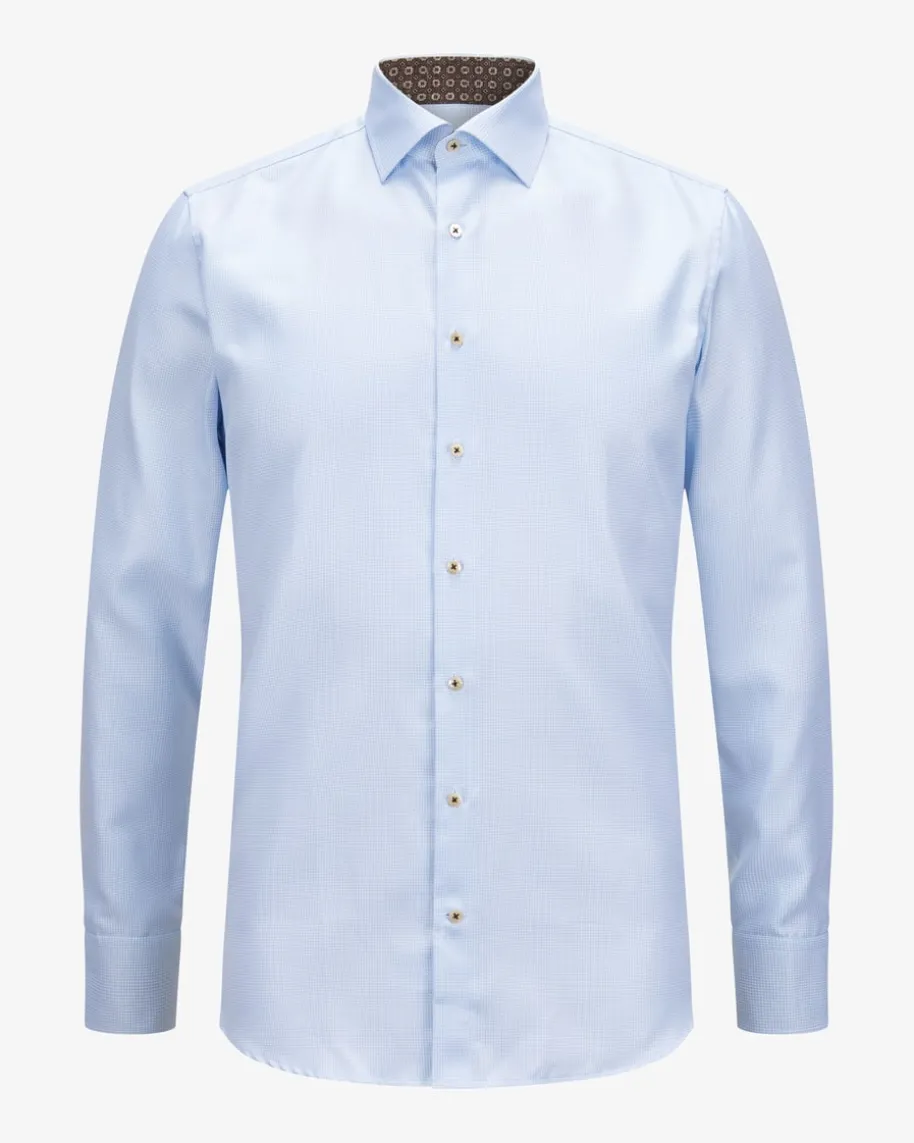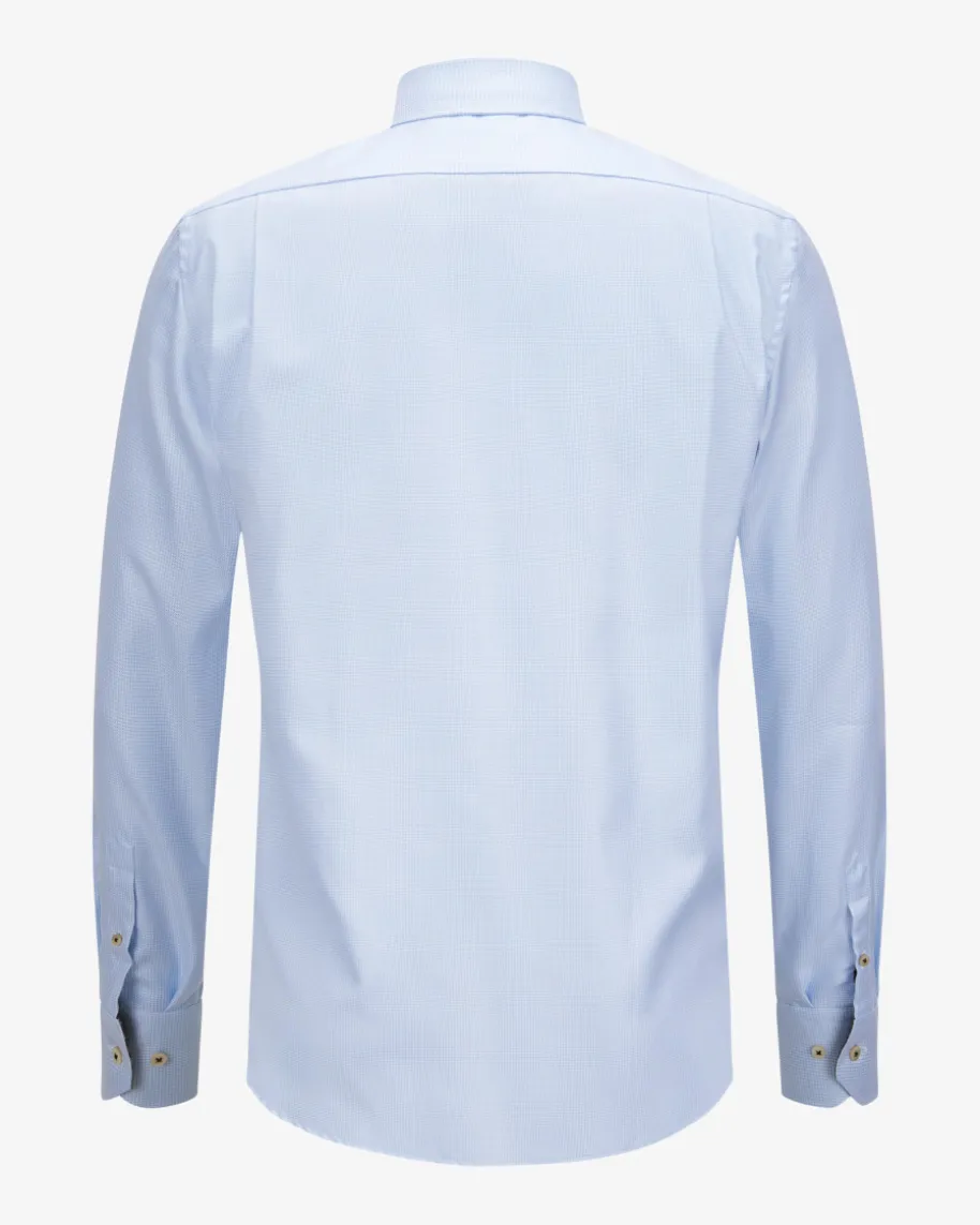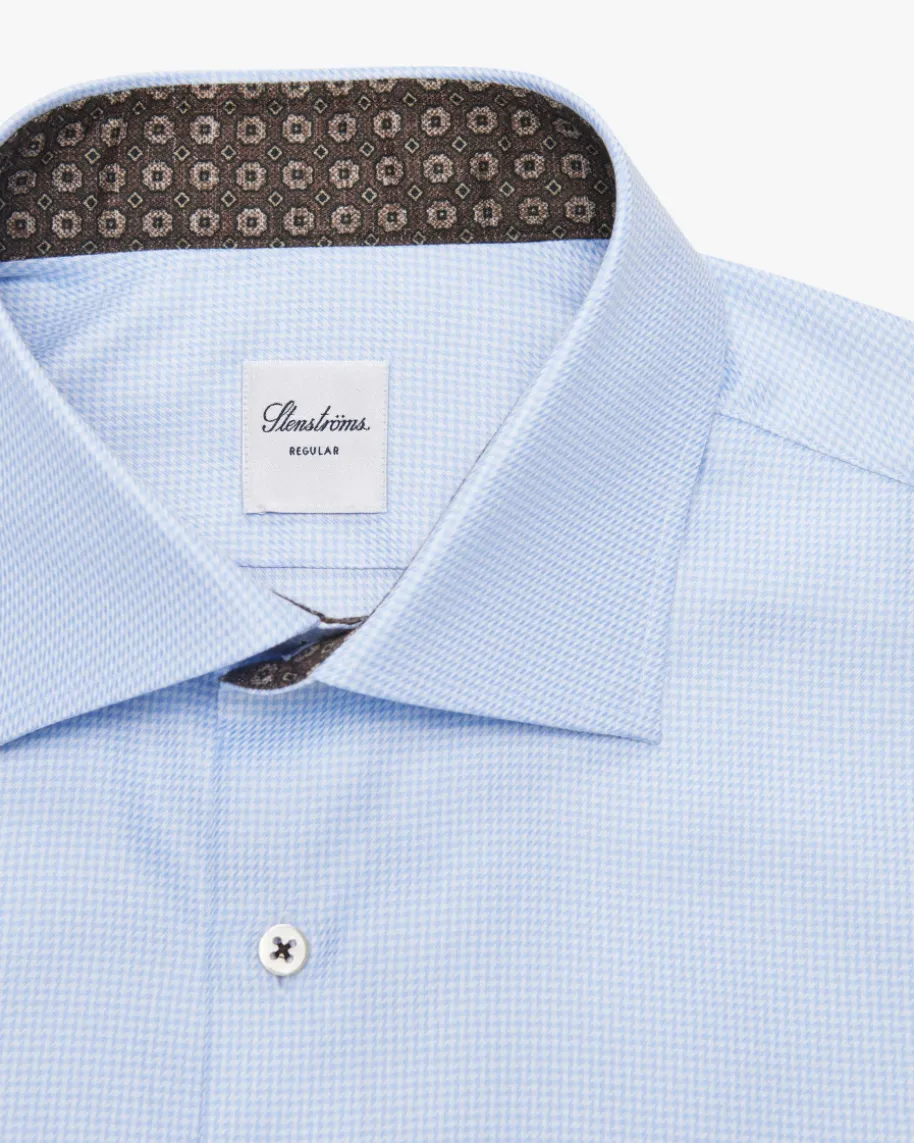 Businesshemd Regular für Herren von Stenströms in Hellblau und Weiß. Klassischund zeitgemäß präsentiert sich das gerade geschnittene Twill-Hemd aushochwertiger Twofold-Baumwolle. Zugleich verleihen das feine Hahnentritt-Mustersowie der gemusterte Ausputz einen stilvollen Charakter.