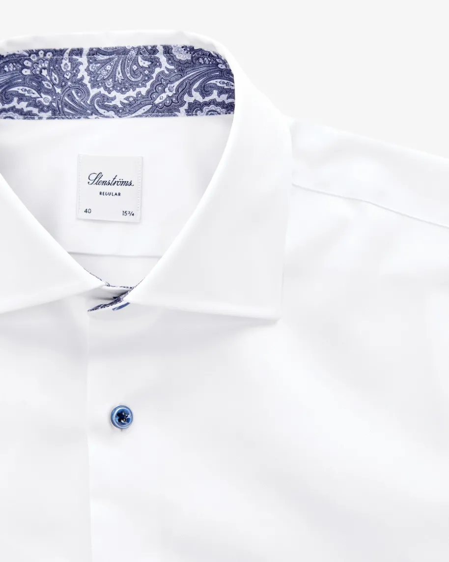 Businesshemd Regular für Herren von Stenströms in Weiß. Klassisch und zeitgemäßpräsentiert sich das gerade geschnittene Hemd aus hochwertiger Twofold-Baumwolle. Zugleich verleiht der Ausputz mit Paisley-Muster einen stilvollenTouch.