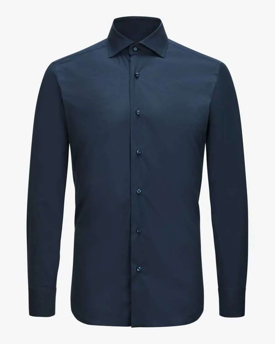 Businesshemd Slim Stretch für Herren von Barba in Dunkelblau. Das Modell kreiertmitklassischen Details einen zeitlosen Look, während die feine Verarbeitung sowieder elastische Baumwoll-Mix hohen Komfort und modebewusste Auftrittegarantieren.