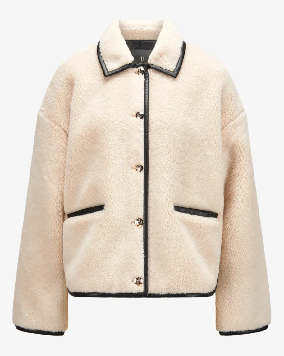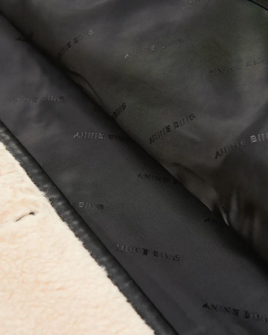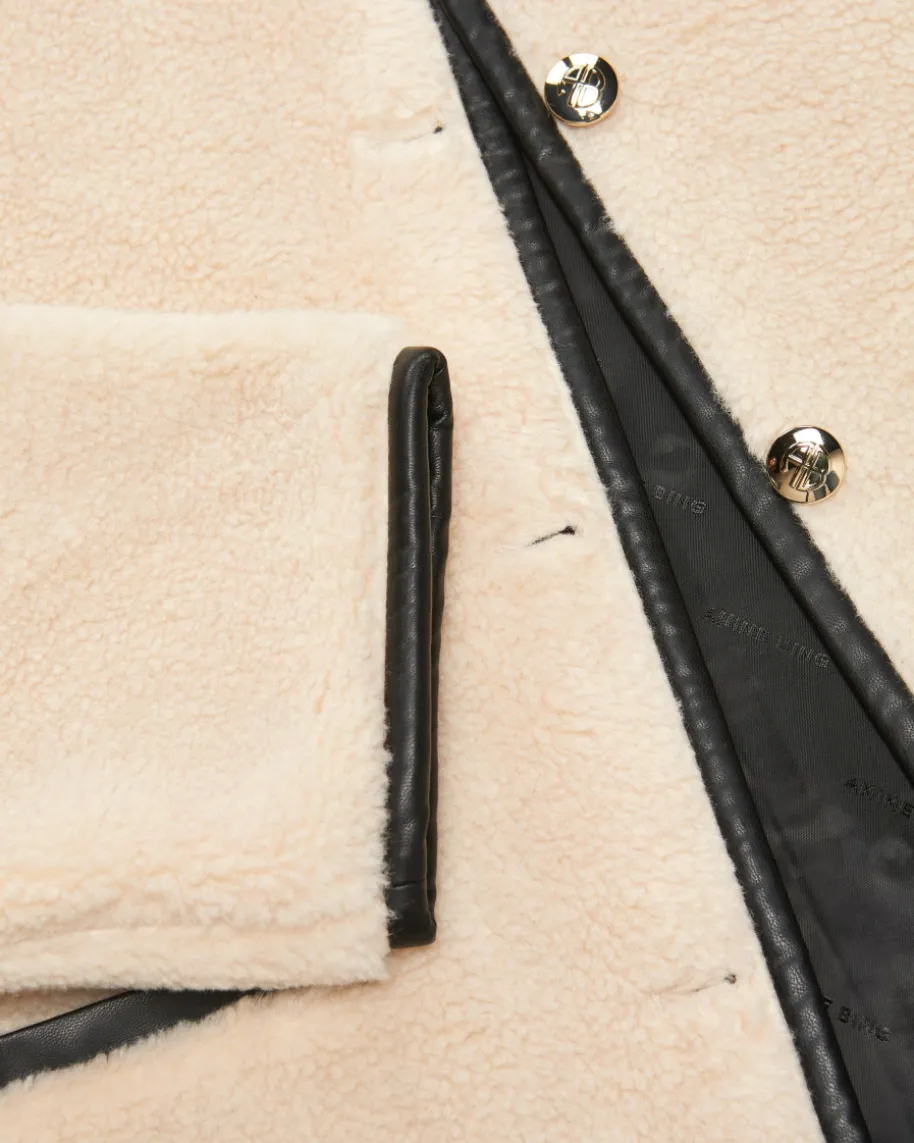 Camden Jacke für Damen von Anine Bing in Nude und Schwarz. 2012 in Los Angelesgegründet, vereint das Label skandinavischen Minimalismus mit amerikanischerCoolness. Dieses Modell in kuscheliger Teddy-Aufmachung überzeugt mit weichemGriff, während die eingefassten Details und die goldfarbenen Logo-Knöpfe denGesamtlook edel abrunden.