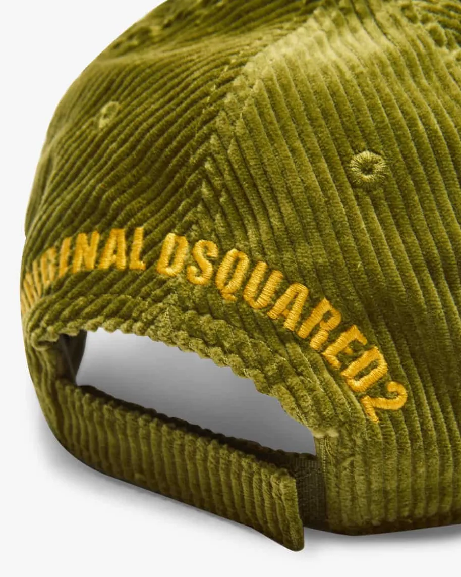 Cap für Herren Dsquared2 in Moosgrün. Das Modell begeistertdank weicherCord-Qualität sowohl optisch als auch haptisch, während dieverstärkteVorderseite eine formstabile Silhouette kreiert. Derauffällige Patch sowiedezente Destroyed-Details runden das Accessoirecharakteristisch ab.
