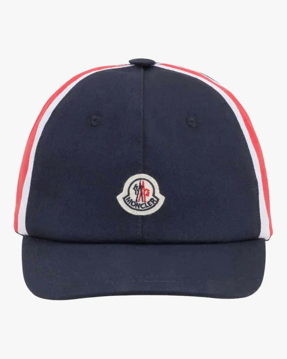 Cap für Jungen von Moncler in Navy und Rot. Das Model aus angenehmer Baumwollebesticht durch den charakteristischen Farbverlauf. Belüftungslöcher verleihenhohen Tragekomfort, während der gebogene Schirm sportive Akzente setzt. Einverstellbarer Klettverschluss am Hinterkopf sowie ein kontrastierendes Logo-Detail vollenden gekonnt das Gesamtbild.