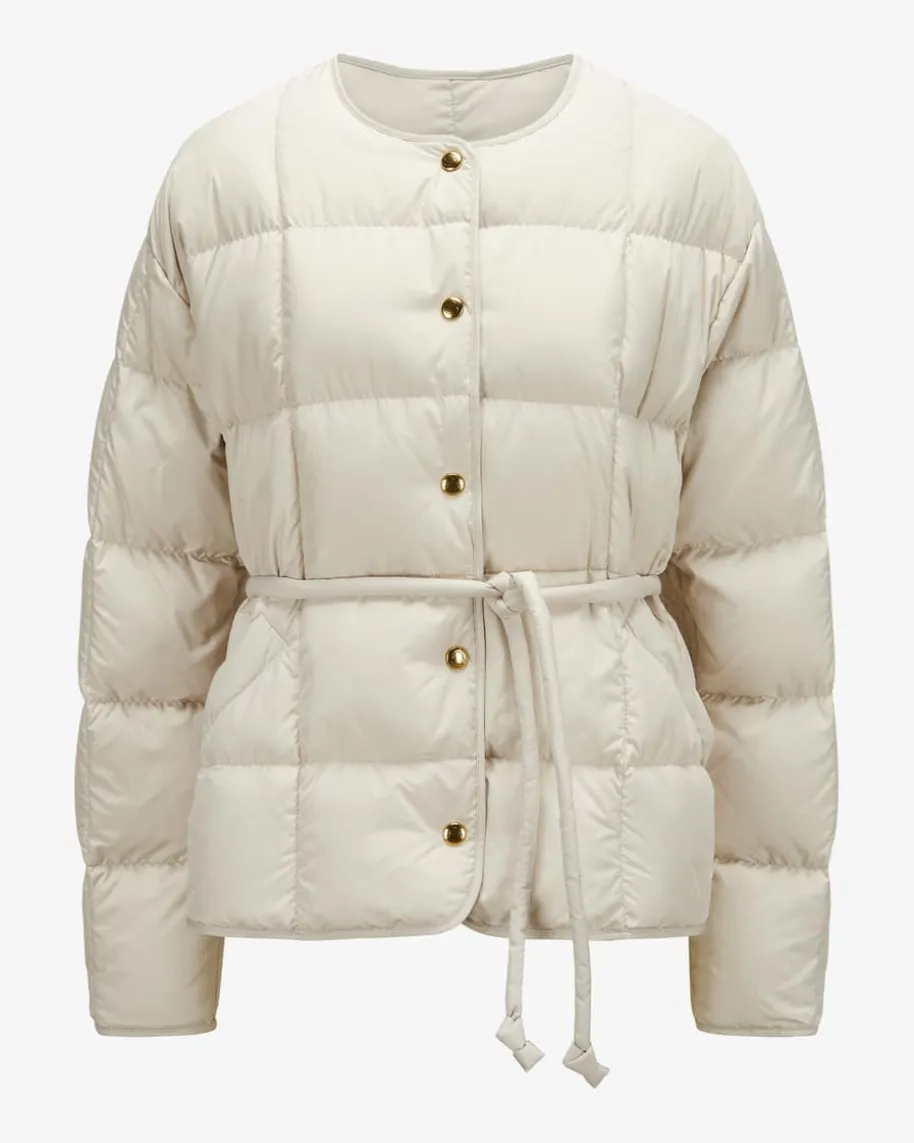 Caramagne Daunenjacke für Damen von Moncler in Creme. Denkt man an hochwertige,warme Daunenjacken, kommt einem unweigerlich das italienische TraditionslabelMoncler in den Sinn. Auch mit diesem Modell präsentiert das Label dank derhochwertigen, leichten Daunen-Feder-Füllung einen idealen Übergangs-Begleiter,welcher durch die weite Passform mit Taillenband und abgerundetem Saum modernund feminin zugleich inszeniert wird.