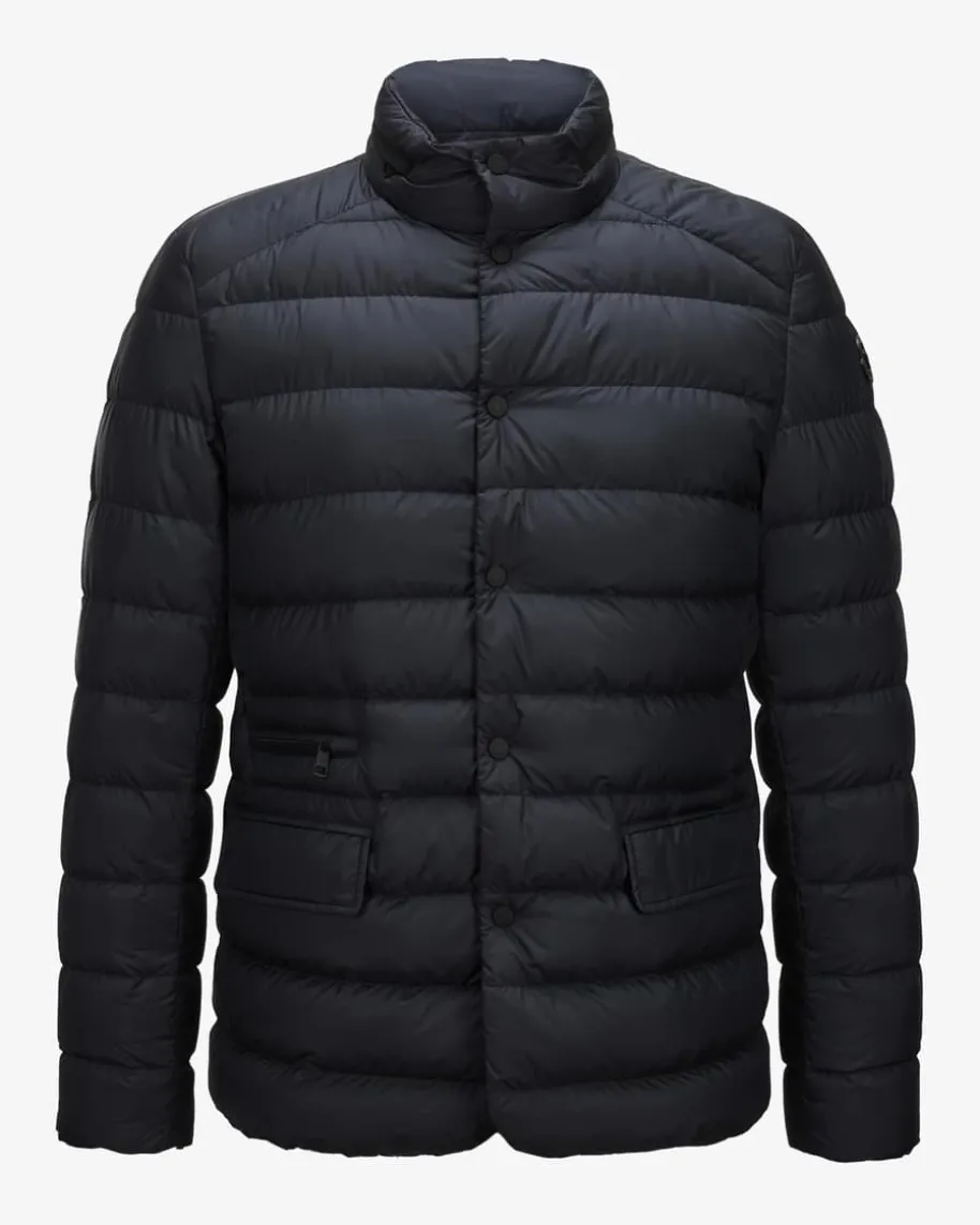 Carrelet Daunenjacke für Herren von Moncler in Navy. Dank der modernenKombination aus Sakko-Elementen und klassischer Steppjacken-Aufmachung mitverstaubarer Kapuze avanciert das Modell zu einem stilvollen sowie softenBegleiter mit wärmender Daunen-Feder-Füllung.