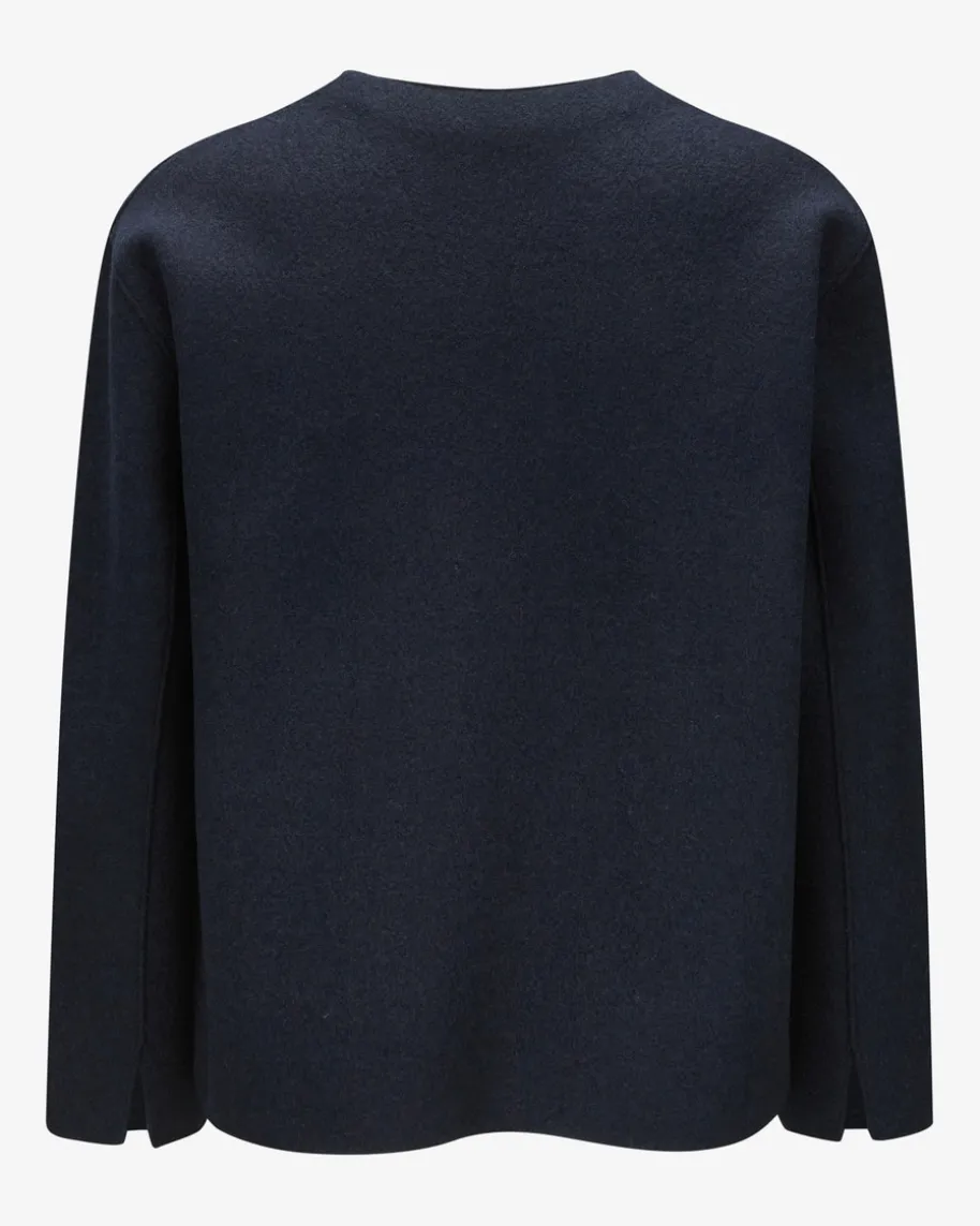 Cashmere-Jacke für Damen von Lunaria in Navy. Pure Exzellenz aus Italien – Dieseungefütterte Blazerjacke aus weicher Cashmere-Qualität begeistert mit legererSchnittführung, welche durch die dekorativen Klappentaschen sowie den offenenVerschluss gekonnt unterstrichen wird und so zum vielseitigen Begleiter fürstilvolle Looks avanciert.